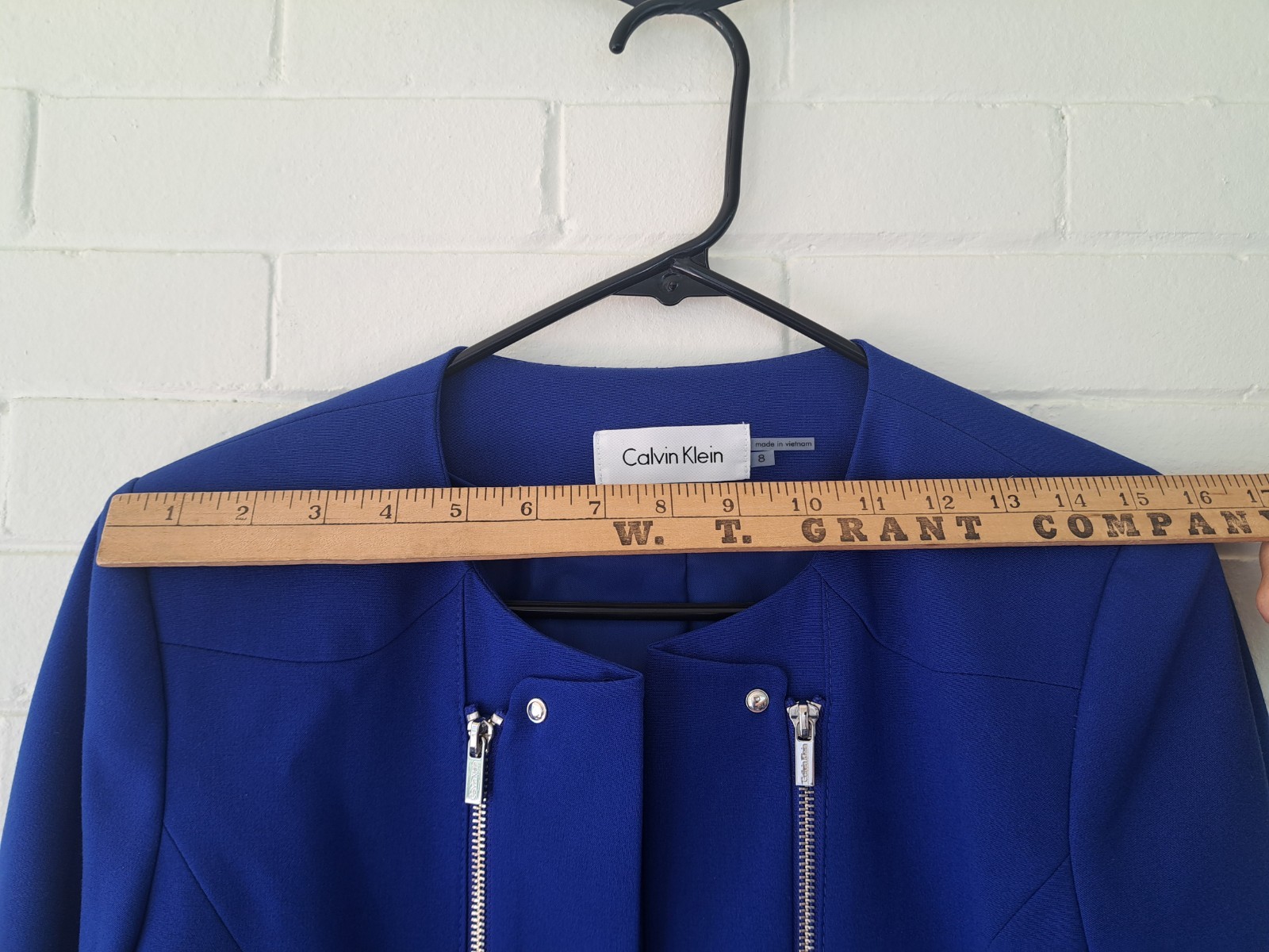 как выглядит Calvin Klein Womens Blue Double Zip Open Blazer Blue Size 8 фото