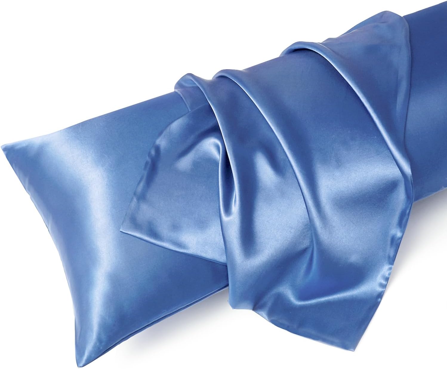 2-Pack Satin Pillowcase for Hair and Skin Queen Size 20x30 Black Envelope