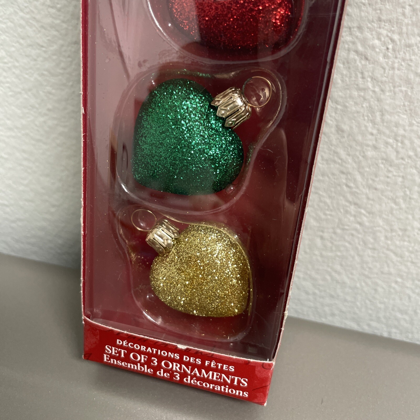 • Hallmark Keepsake Hand Blown Glass Ornaments Hearts Red Green Gold Set of 3