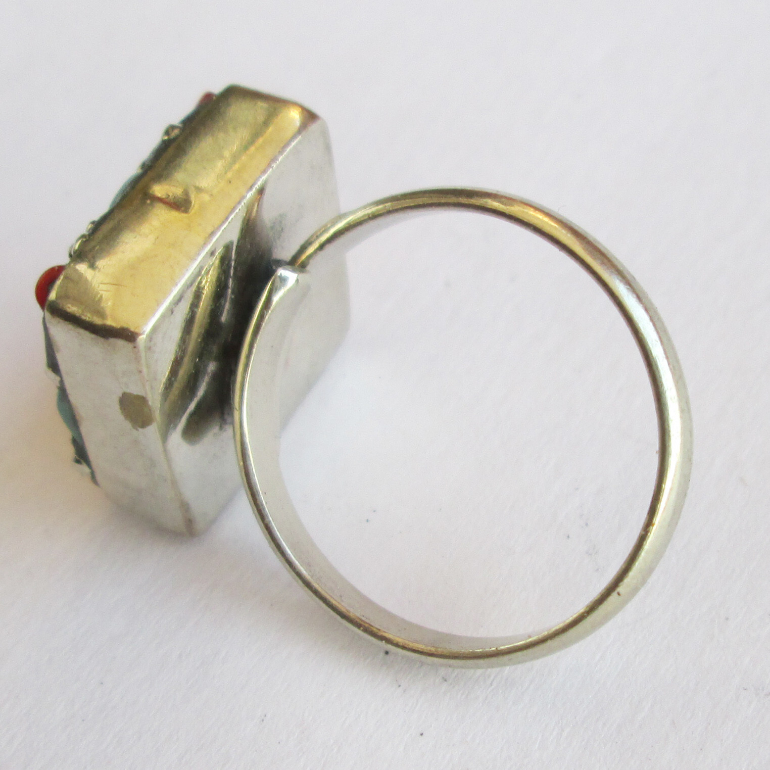 как выглядит Tibetan Silver Turquoise Red Coral Original Jewelry Adjustable Round Ring R36 фото