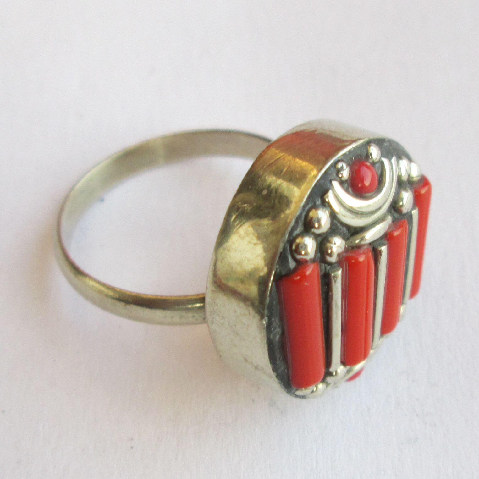 как выглядит Tibetan Silver Original Red Coral Jewelry Adjustable Round Ring R38 фото