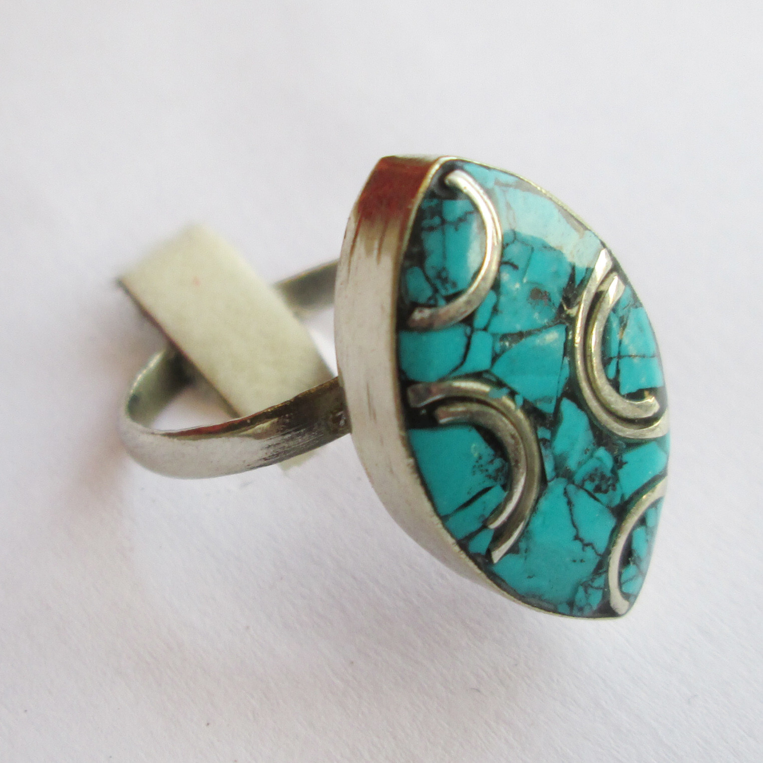 как выглядит Tibetan Silver Green Turquoise Handmade Boho Jewelry Adjustable Unisex Ring R58 фото