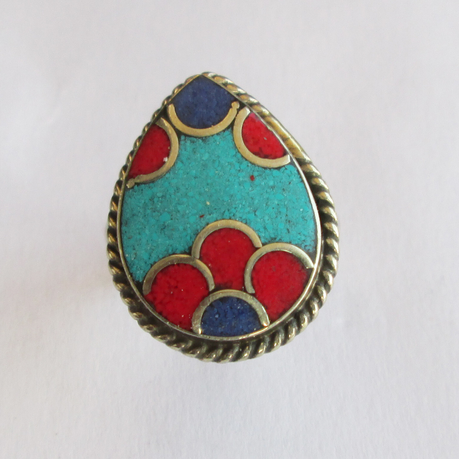 как выглядит Tibetan Silver Turquoise Red Coral Original Jewelry Adjustable Unisex Ring R51 фото