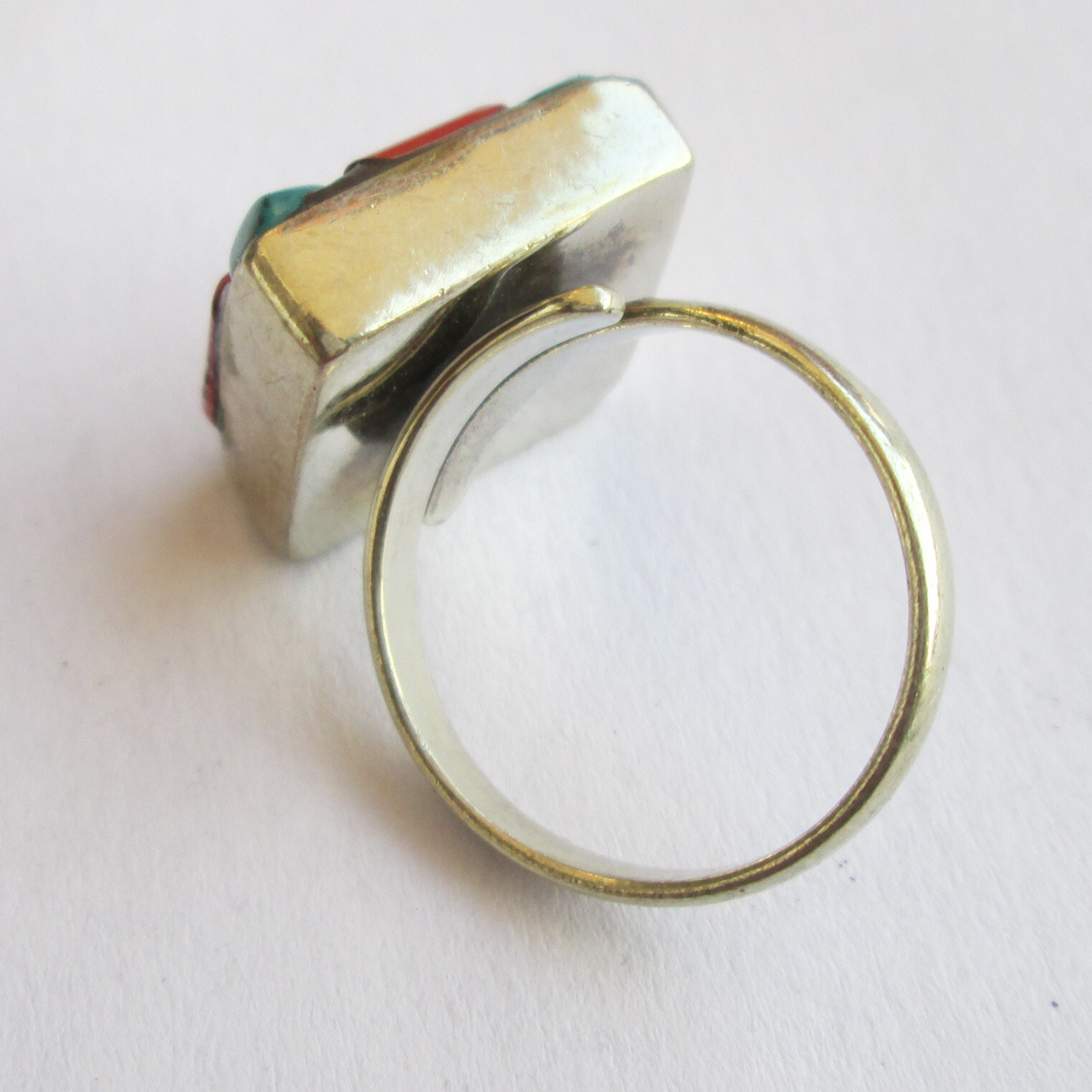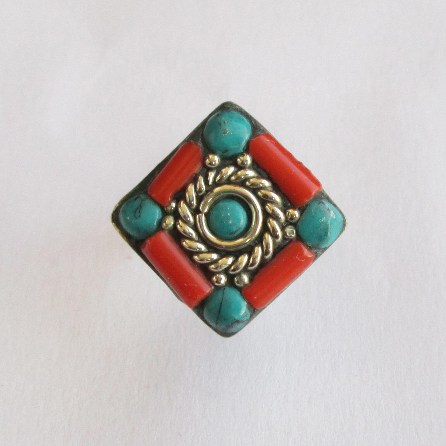 как выглядит Tibetan Silver Turquoise Red Coral Original Jewelry Adjustable Round Ring R31 фото