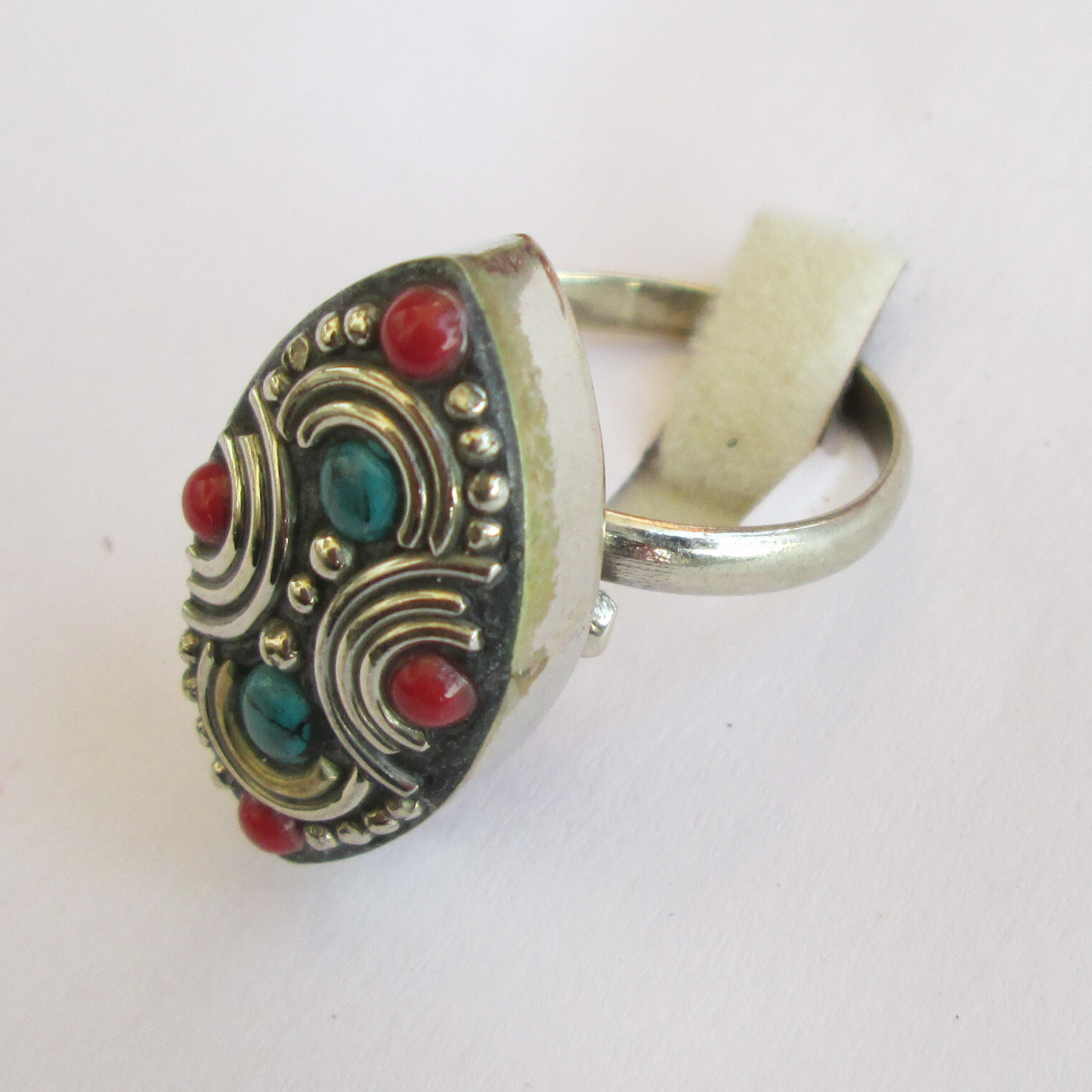 как выглядит Tibetan Silver Turquoise Red Coral Original Jewelry Adjustable Unisex Ring R27 фото