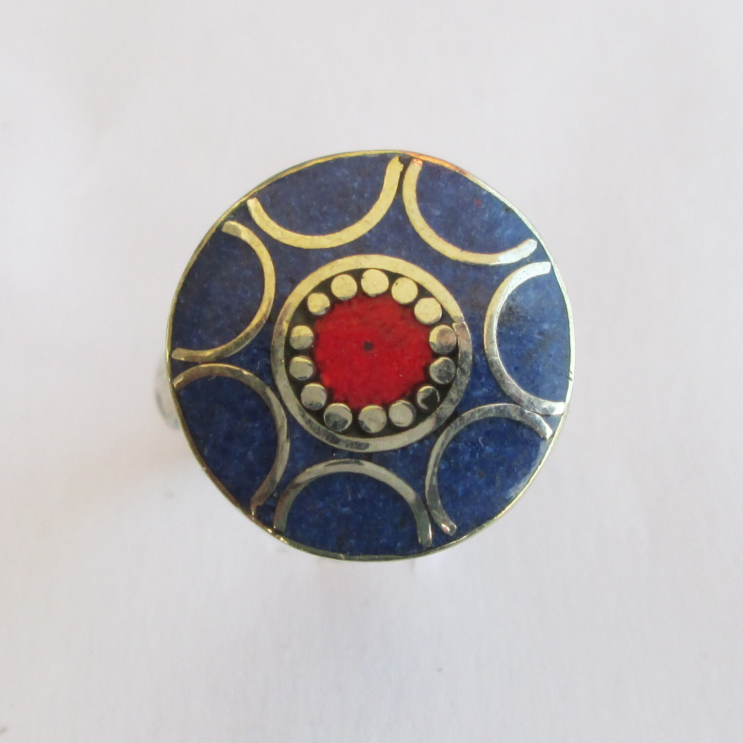 Tibetan Silver Coral Blue Lapis Handmade Boho Jewelry Adjustable Unisex Ring R22