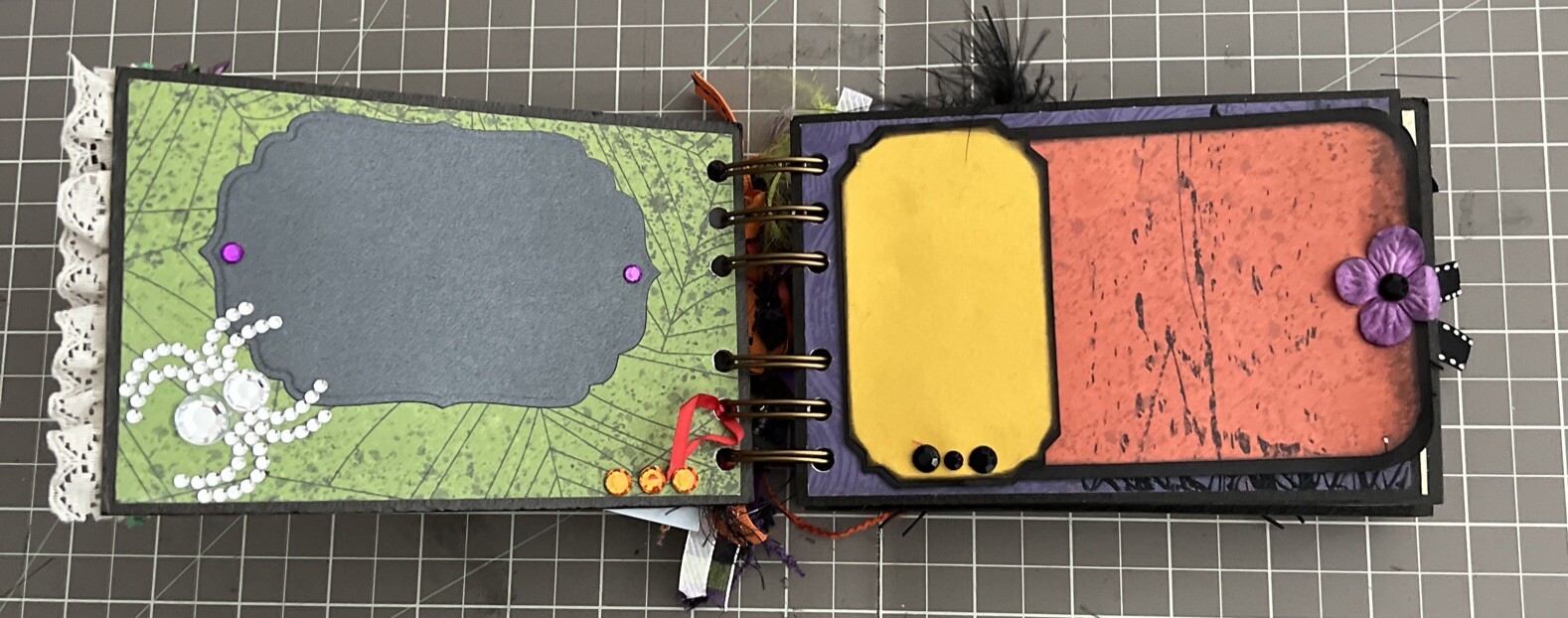 Halloween Premade Mini Scrapbook Photo Album Journal 4x6 Interactive Pockets Tag
