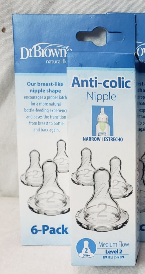 Dr. Brown s 6 Count Natural Flow Anti-Colic Baby Nipple Level 2 Medium Flow, 3m