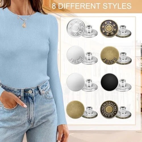 как выглядит 24 Pcs 17mm Jeans Button Replacement, Metal Buttons for Jeans No-Sew Black фото