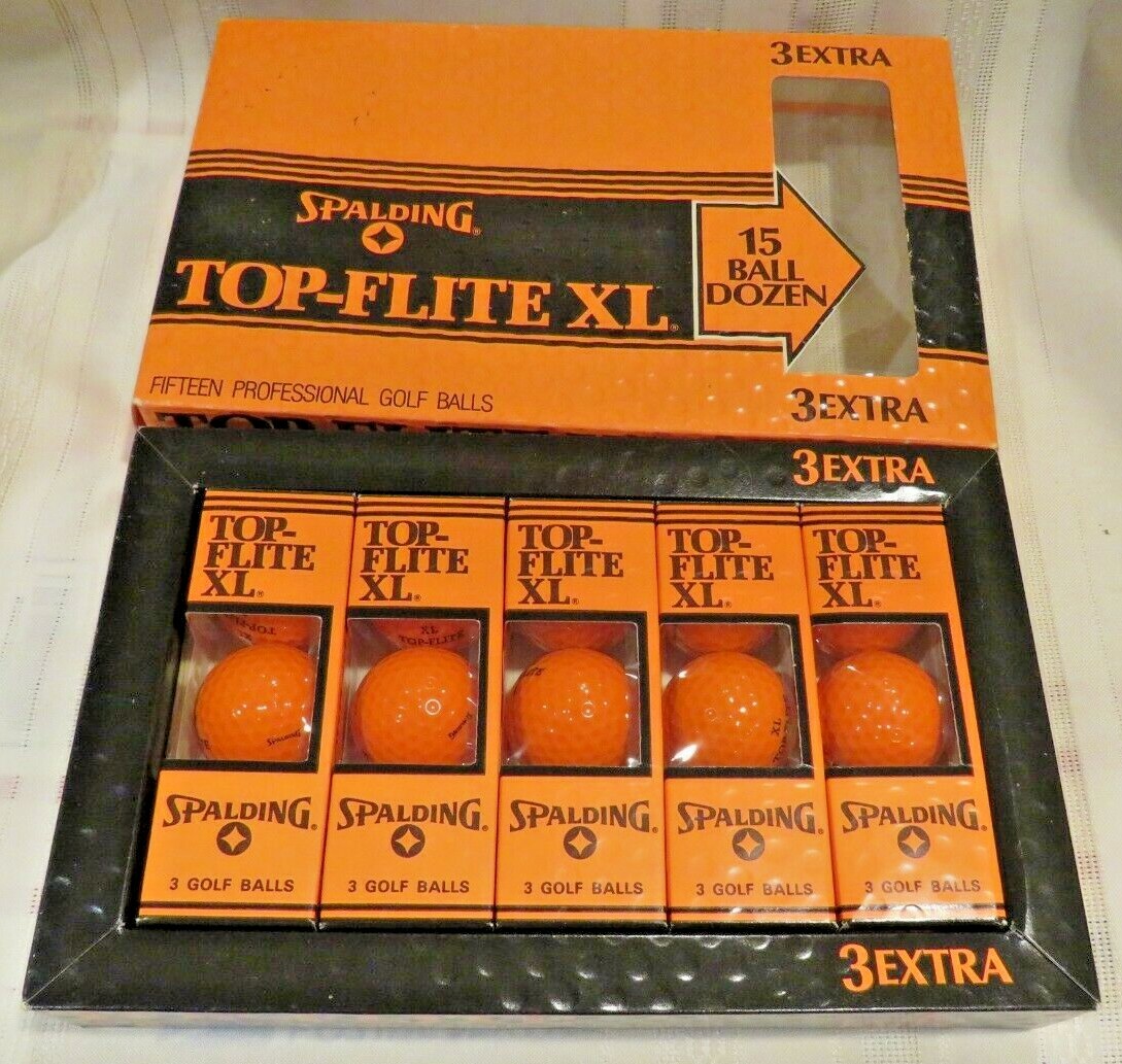 New - Vtg - Spalding Top Flite XL Orange Professional Golf Balls 15 Balls IN BOX