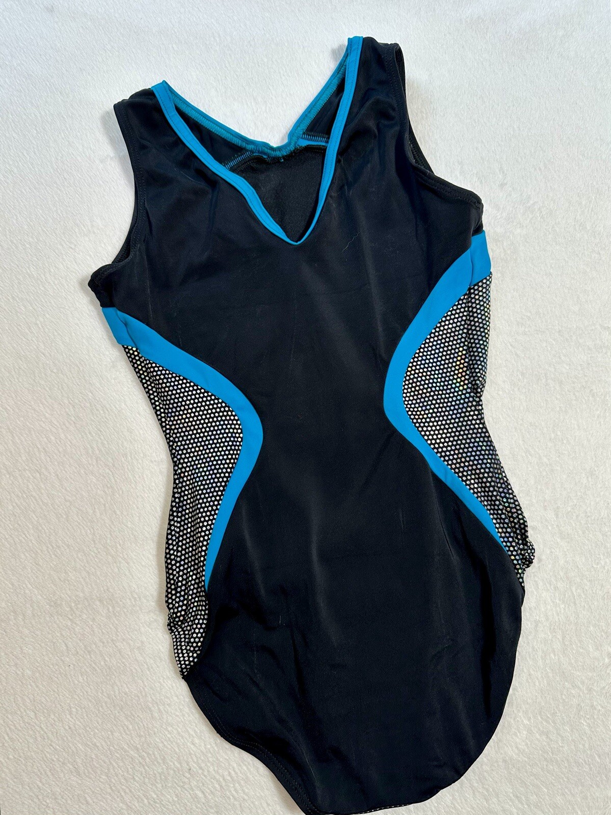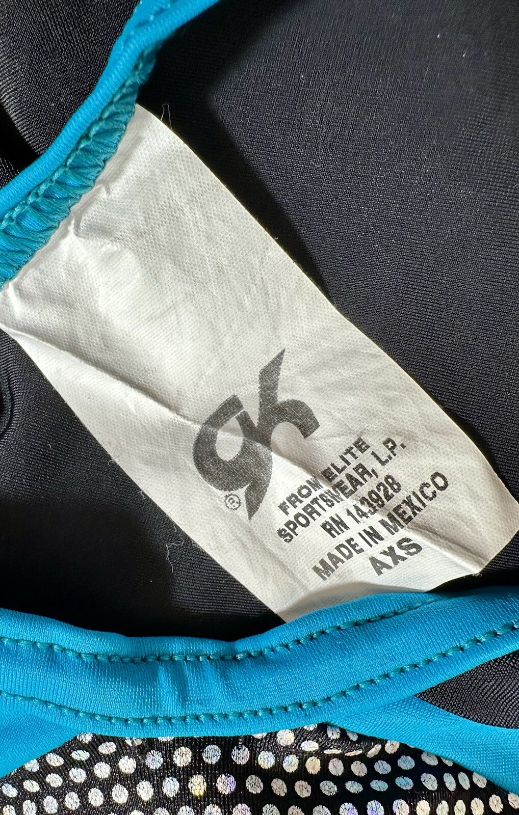 GK ELITE Gymnastics Leotard USA OLYMPIC Team Member BLACK BLUE Flag LEO Sz: AXS