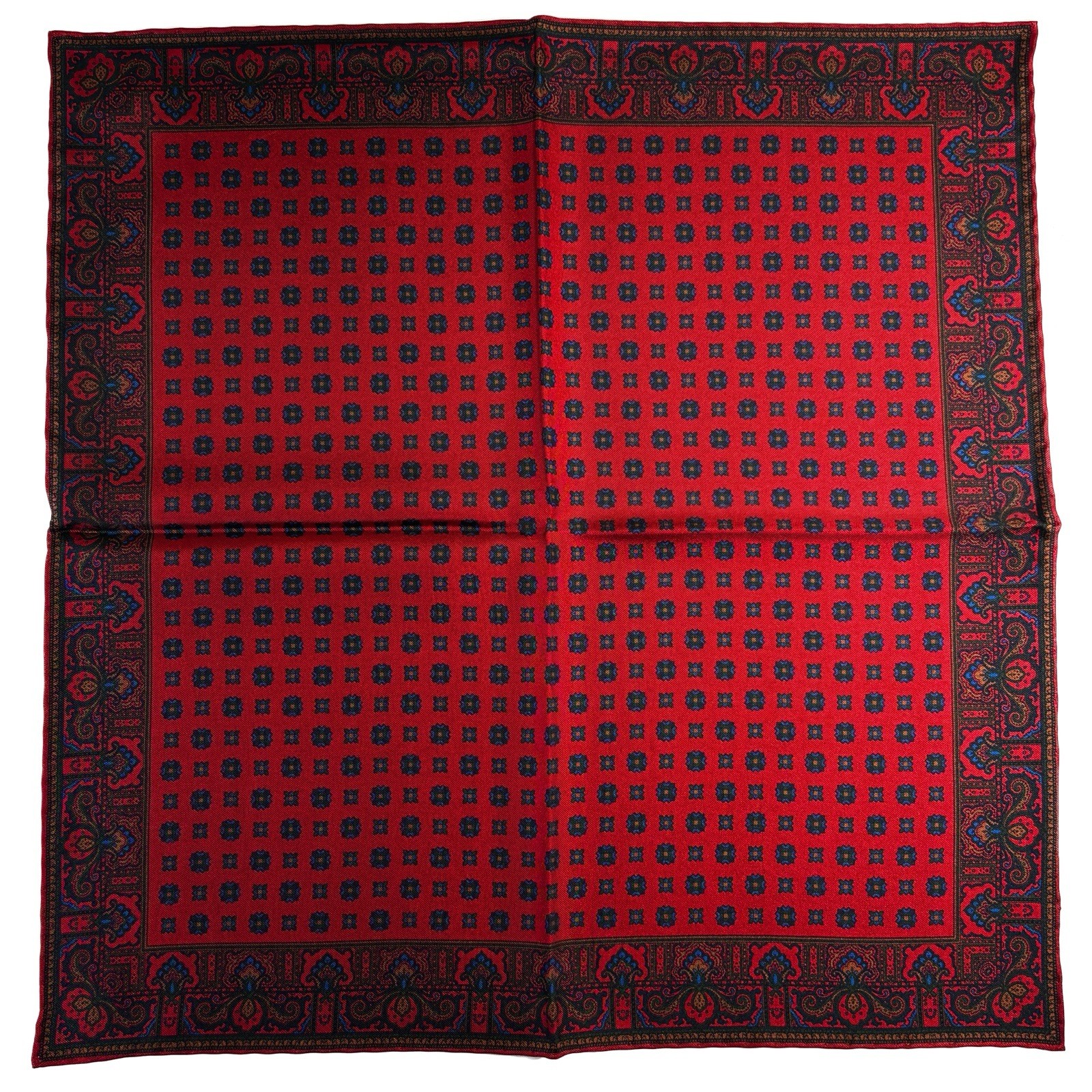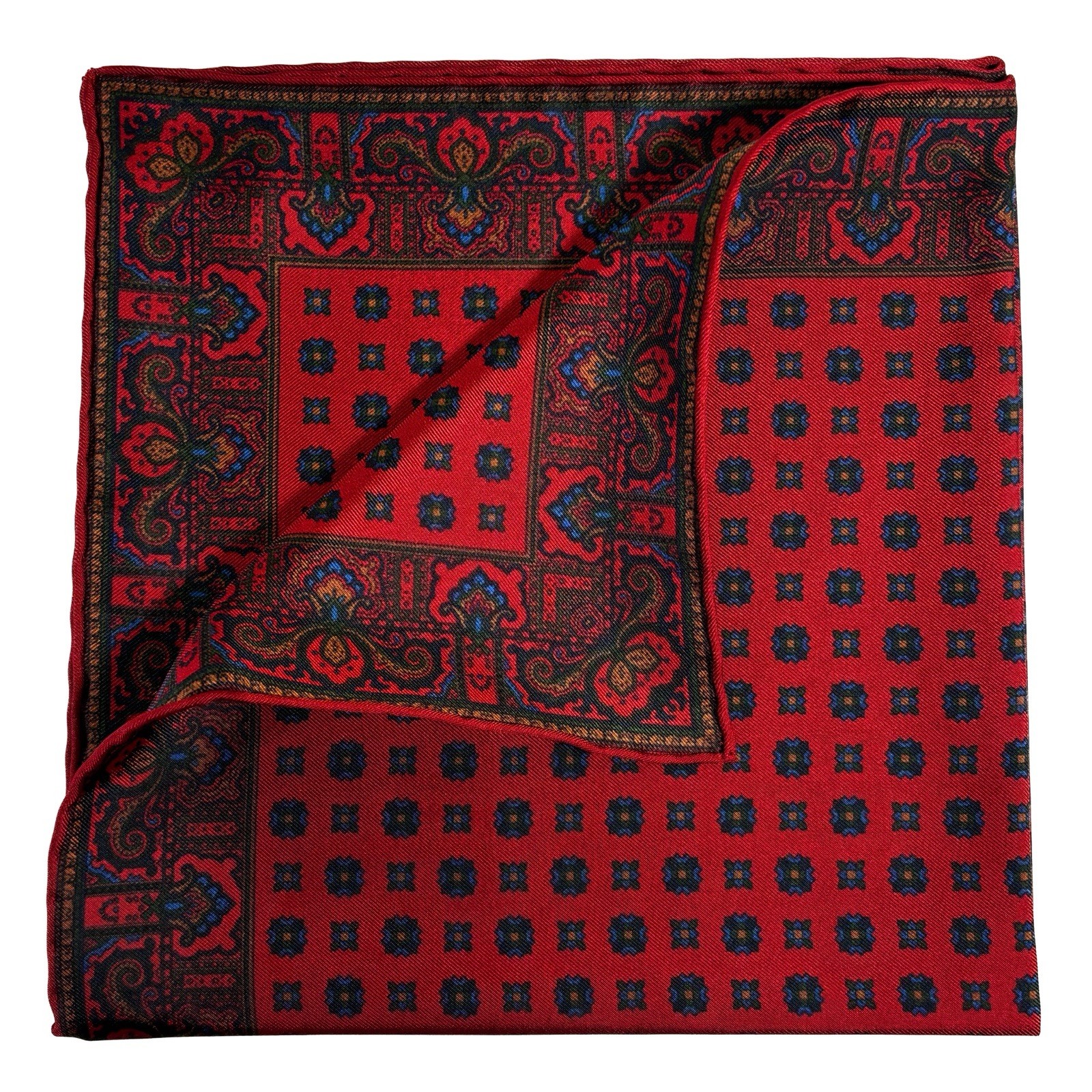 Red Floral Ancient Madder Silk Pocket Square Hand-Rolled