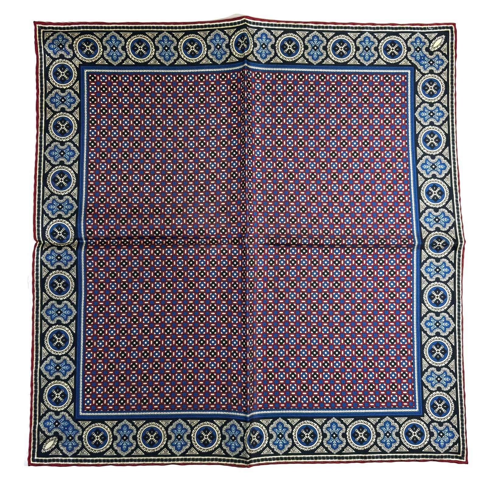 как выглядит Navy Blue Cream Geometric Ancient Madder Silk Pocket Square Hand-Rolled фото