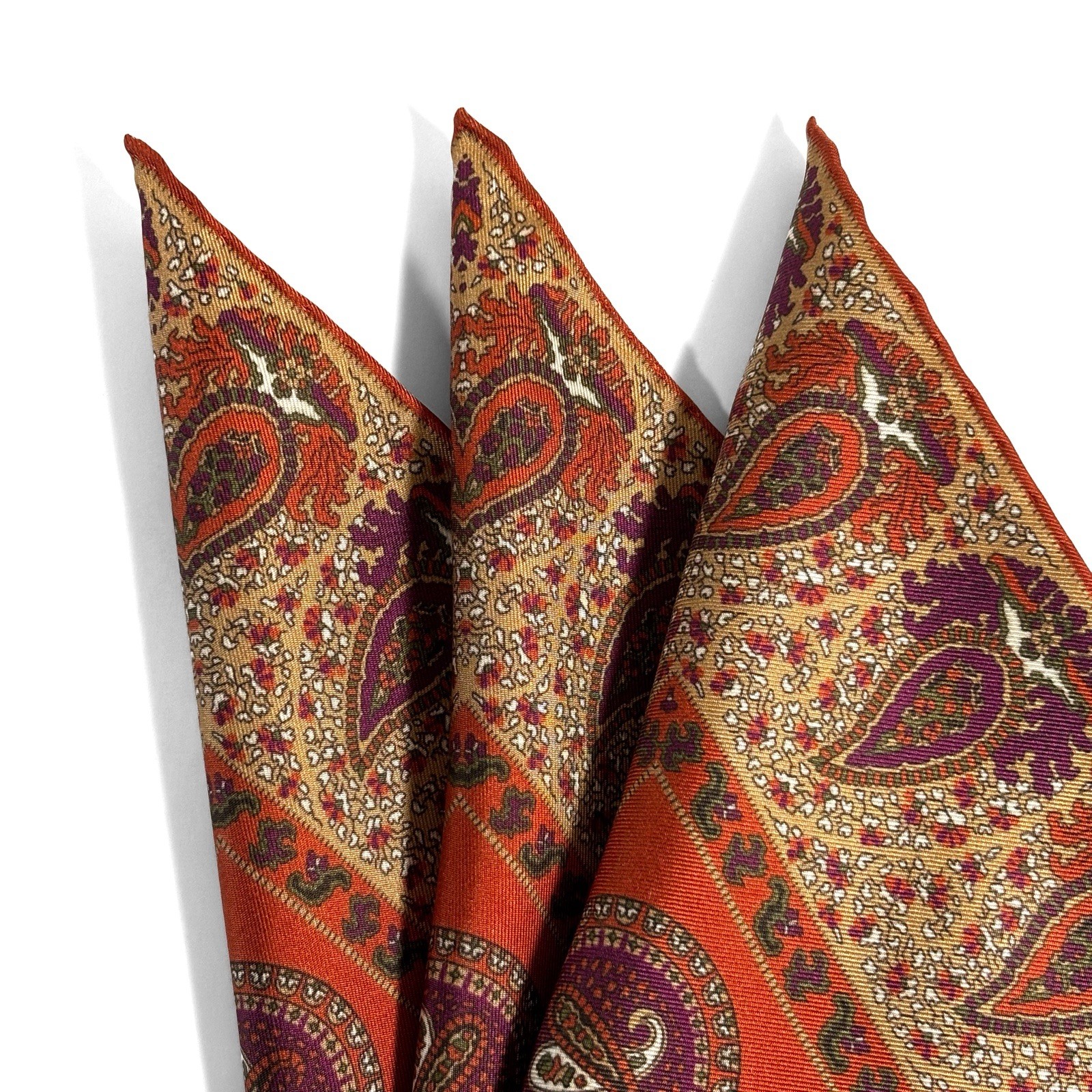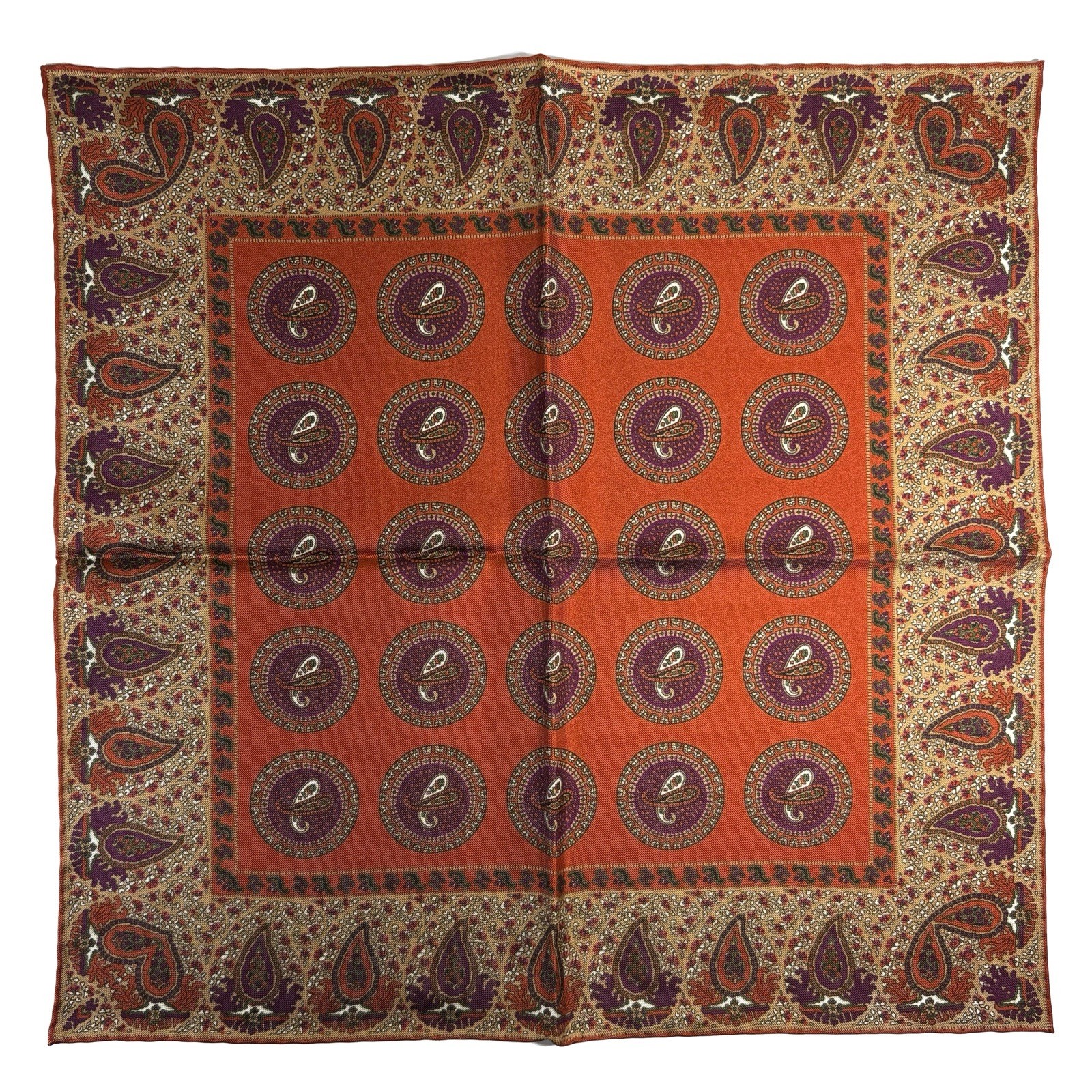Burnt Orange Beige Geometric Ancient Madder Silk Pocket Square Hand-Rolled