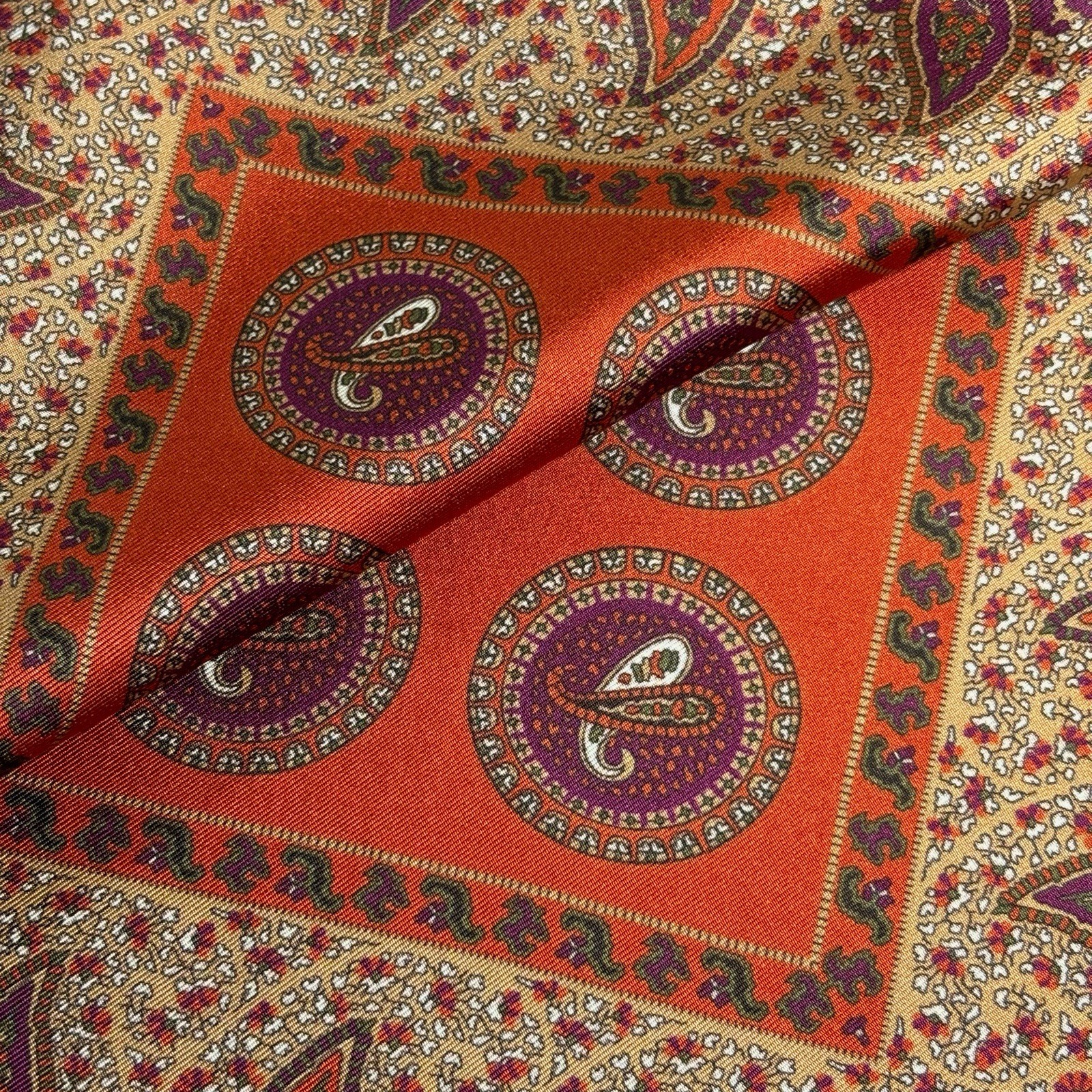 как выглядит Burnt Orange Beige Geometric Ancient Madder Silk Pocket Square Hand-Rolled фото