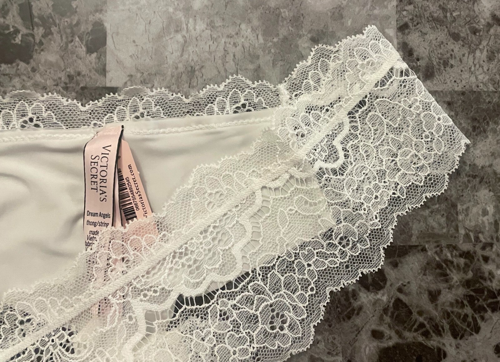как выглядит NWT VICTORIAS SECRET DREAM ANGELS XXL WHITE SMOOTH FLORAL LACE THONG PANTIES фото