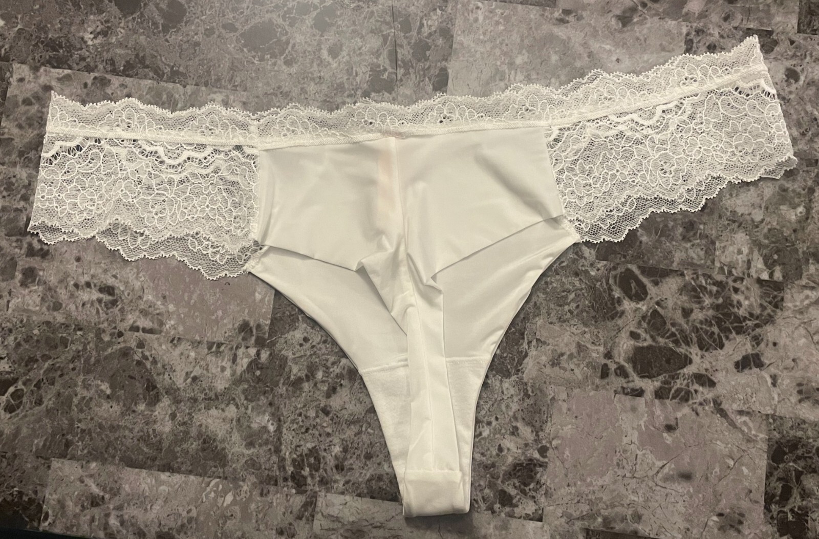 NWT VICTORIA'S SECRET DREAM ANGELS XXL WHITE SMOOTH FLORAL LACE THONG PANTIES