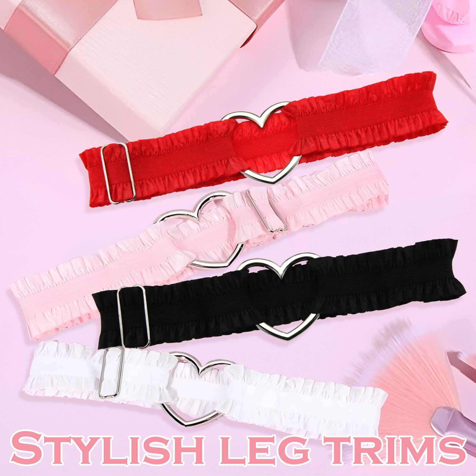 4 PCS Adjustable Heart Lace Thigh Garter Wedding Bride Garter Leg Bands