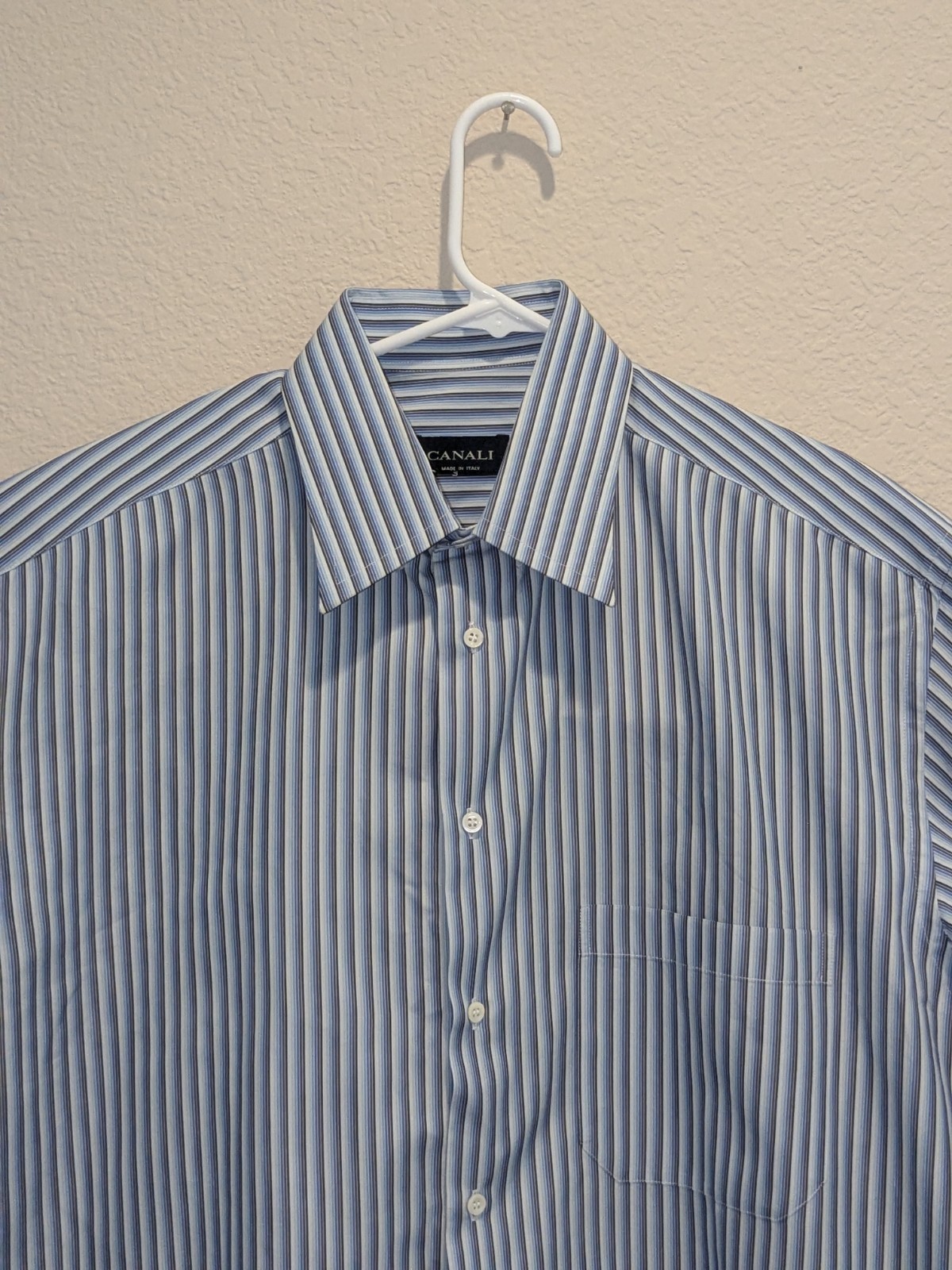 как выглядит Canali Dress Shirt Mens Blue Striped Classic Fit LS Made In Italy Button Up 16.5 фото