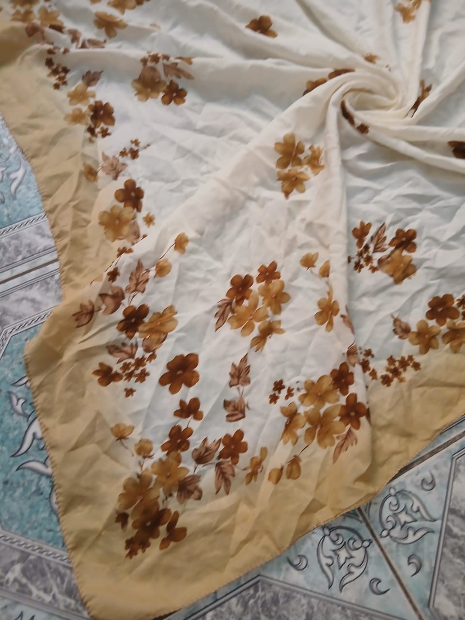 как выглядит Vintage Floral Cream Yellow Square Scarf Boho Head Wrap Lightweight 41 фото