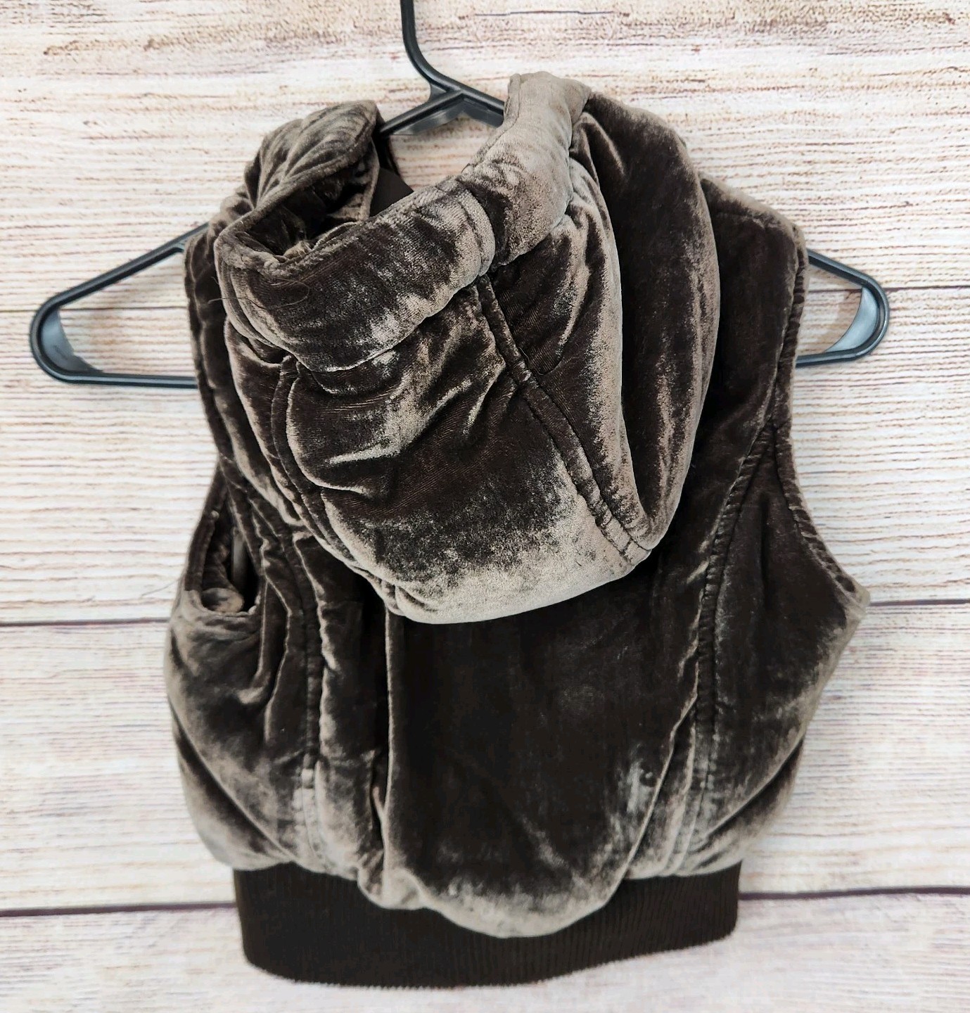GapKids Children's XS/S Size 4-7 Girls Velvet Brown Vest with Hood Preowned GAP