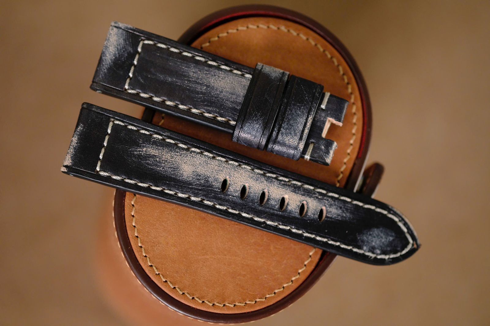 как выглядит Handmade distressed black PAM Officine Panerai strap size 26 or any size 22 24 фото