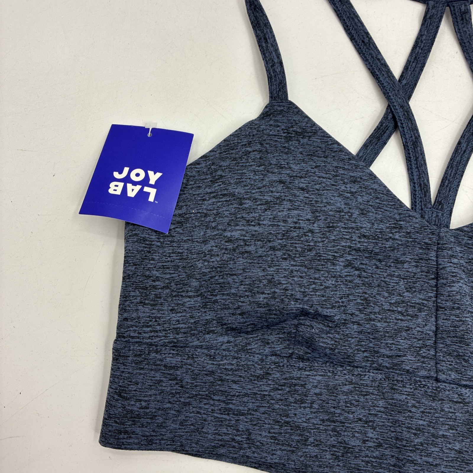 как выглядит JoyLab Womens Size L Blue Strappy Sports Bra Activewear Padded Medium Support фото