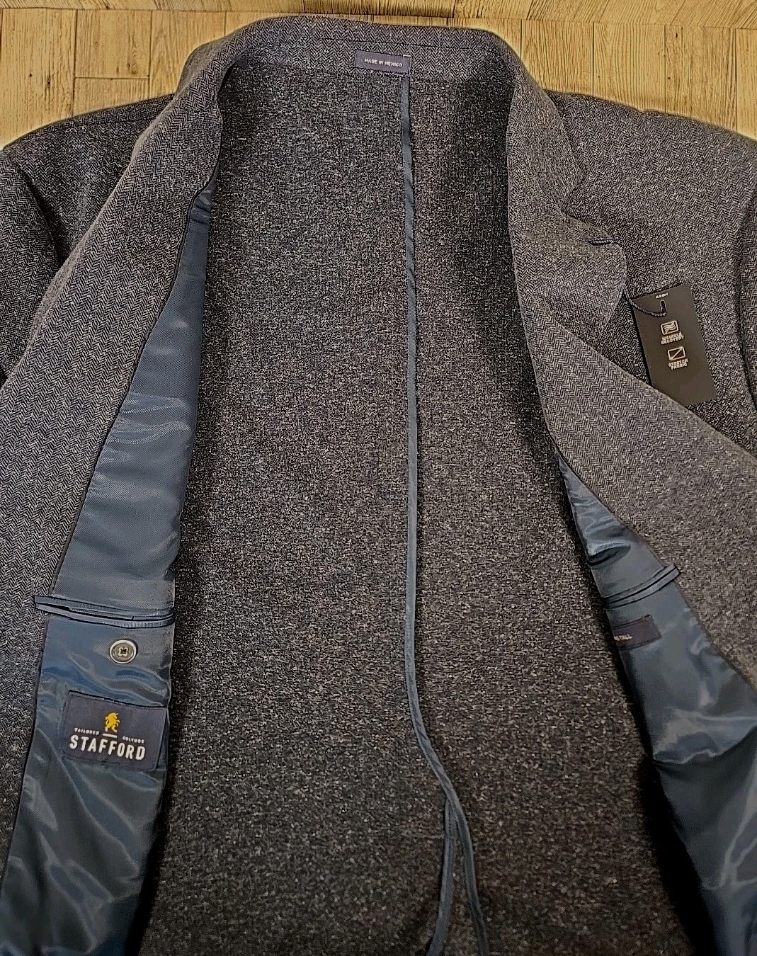как выглядит Stafford Sport Coat 54 or 58 Regular Navy Blue Stretch Fabric Suit Jacket NEW фото