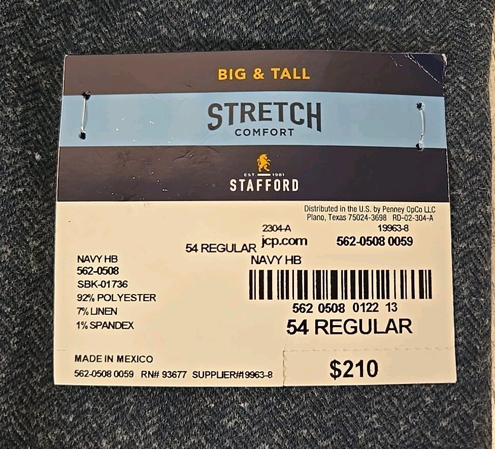 Stafford Sport Coat 54 or 58 Regular Navy Blue Stretch Fabric Suit Jacket NEW
