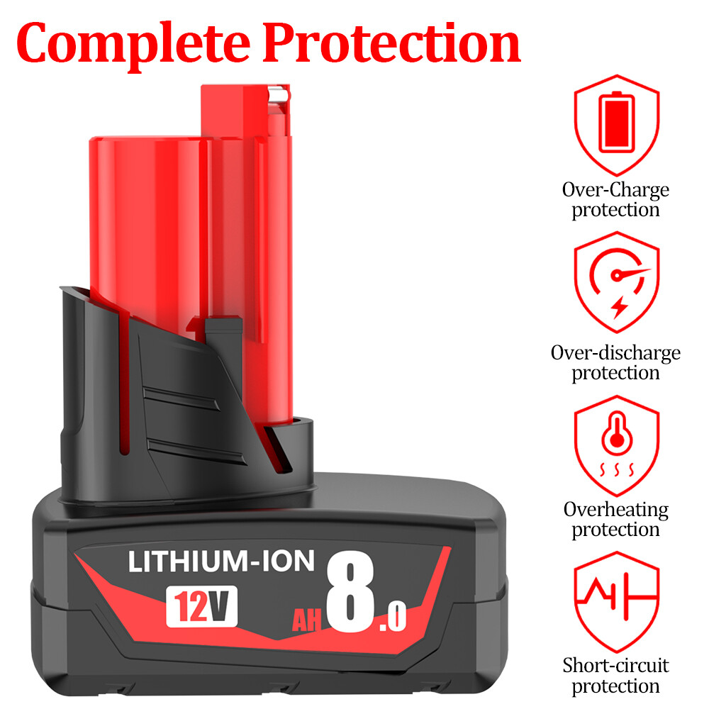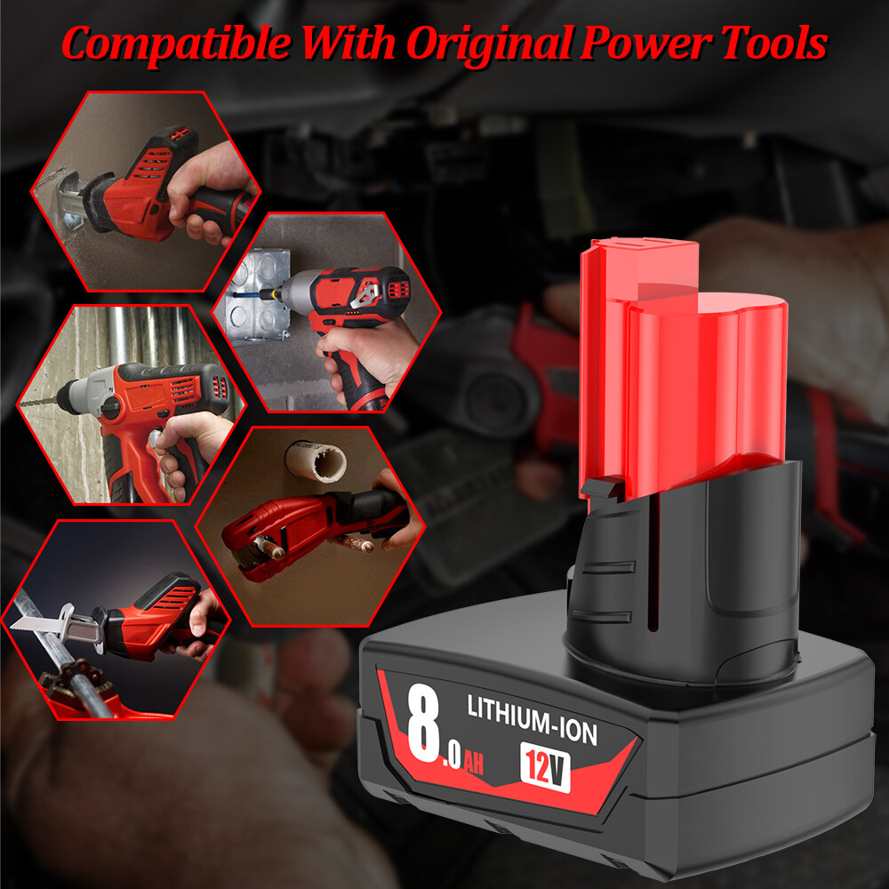 2Pack 8.0Ah Battery For Milwaukee for M12 LITHIUM Extended Capacity 48-11-2460