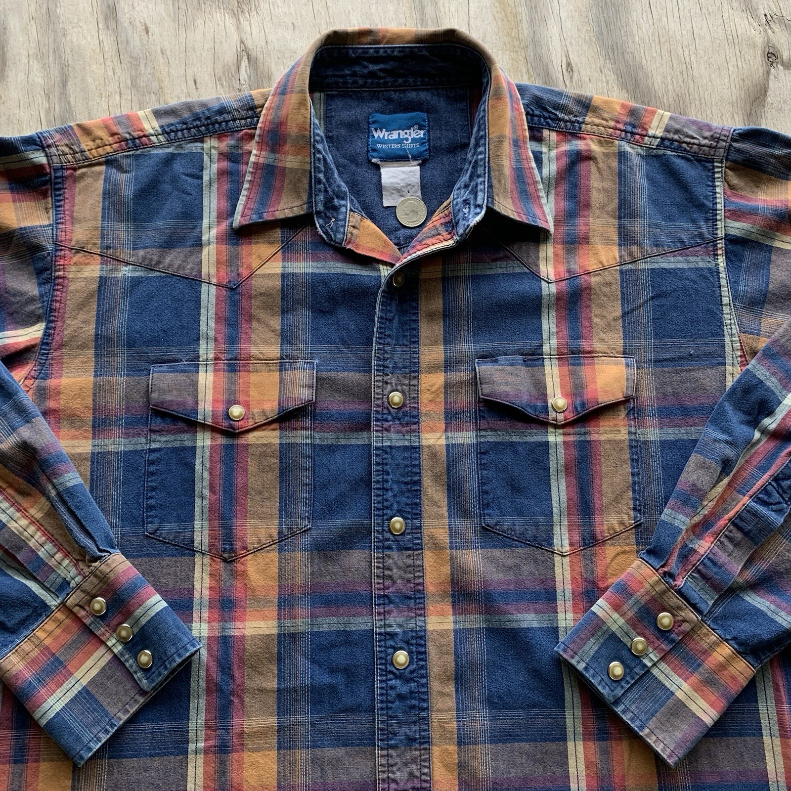 Vintage 90s Wrangler Western Wear Pearl Snap Button Shirt Size XL Retro Cowboy