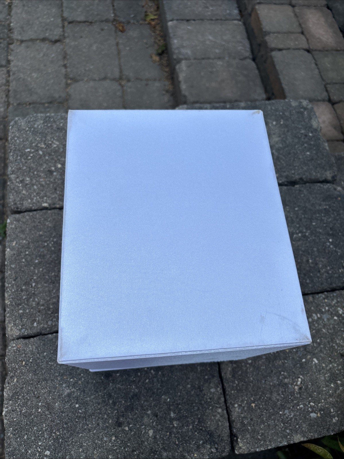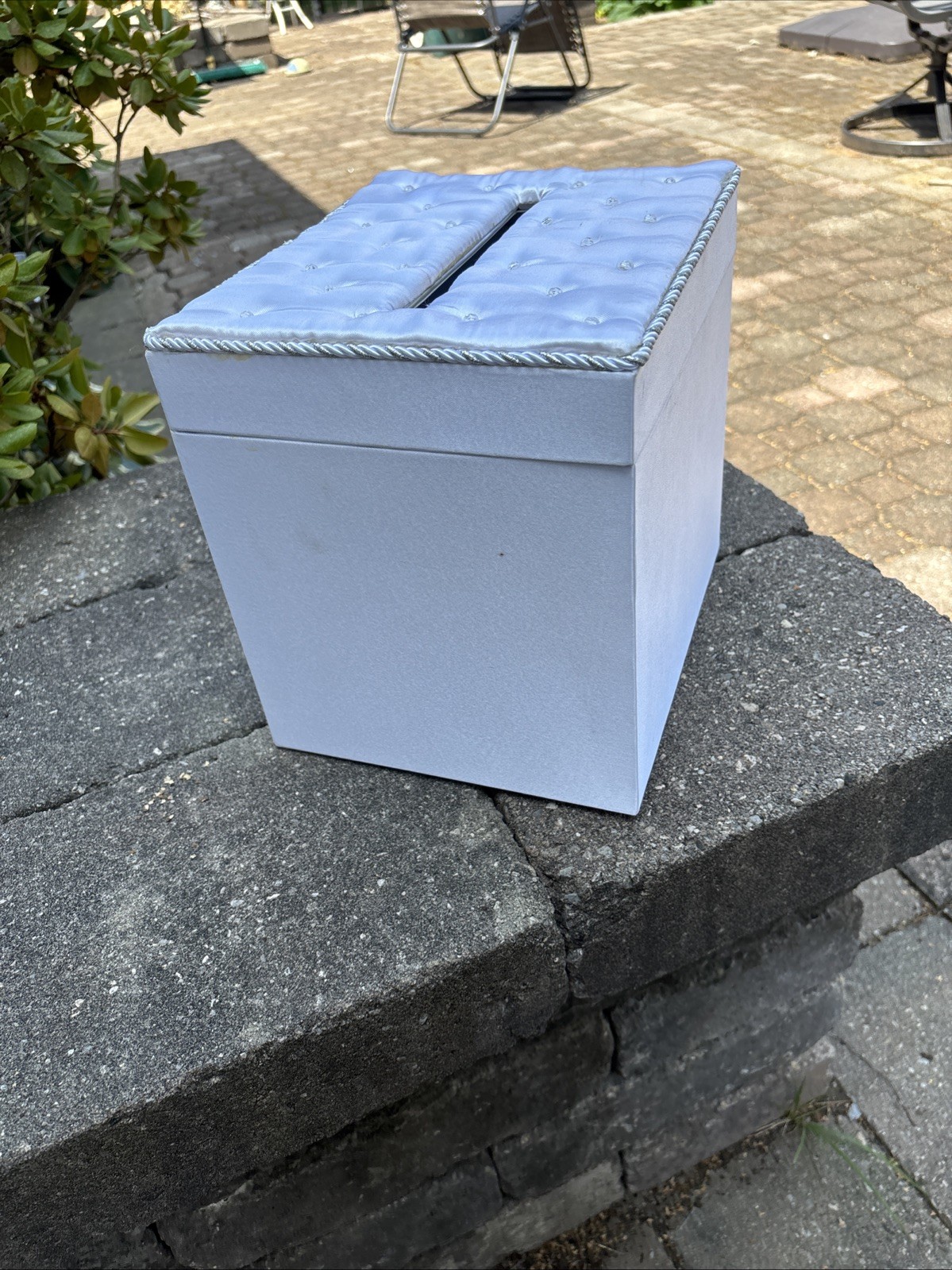 как выглядит Beautiful Used Wedding Satin Card Box W/ Crystal Accent Flip Top Opening White фото