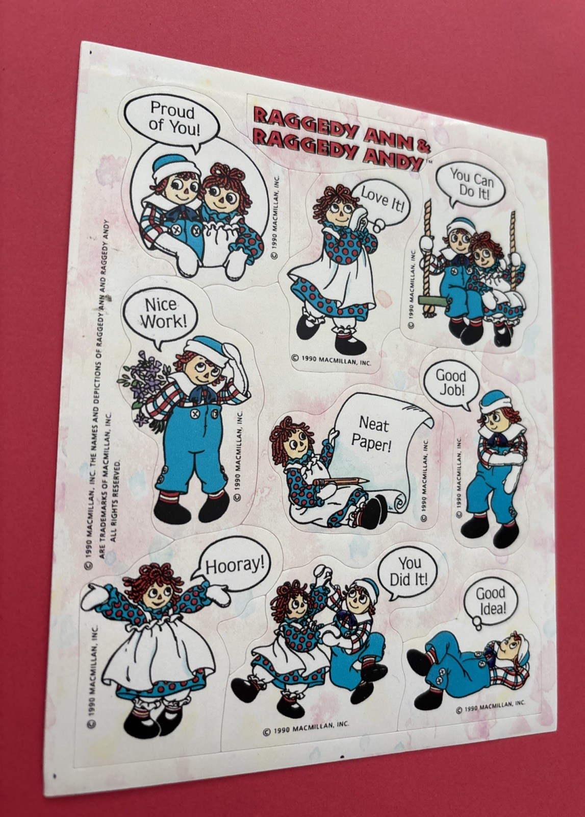 как выглядит Vintage Hallmark Raggedy Ann Raggedy Andy Doll Sticker Sheet 1990 фото