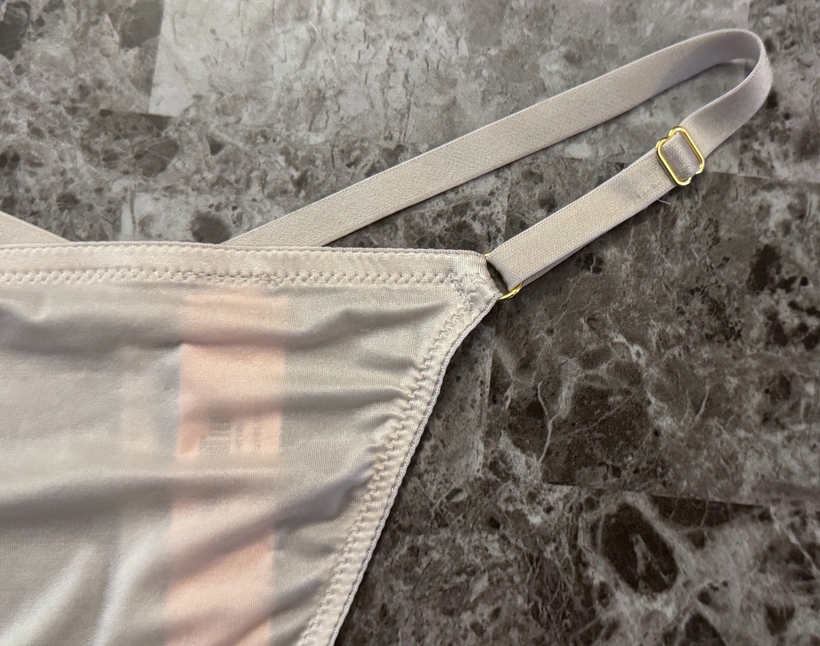 NWT VICTORIA'S SECRET GRAY SATIN SMOOTH GOLD ADJUSTABLE STRAP V STRING PANTIES