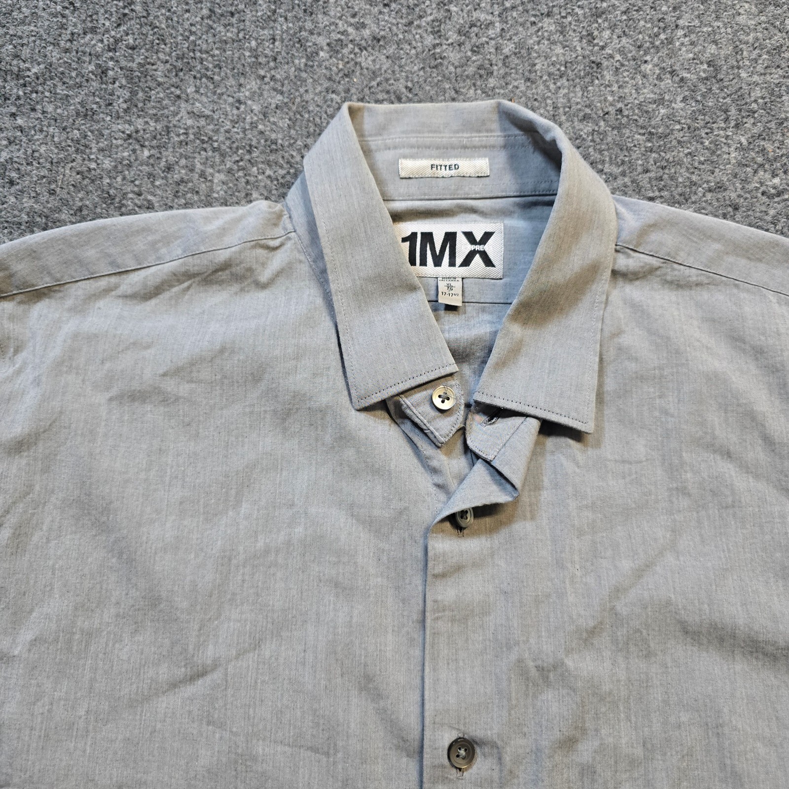 как выглядит Express Shirt Mens Size XL Gray Solid Button Fitted Long Sleeve Casual Career фото