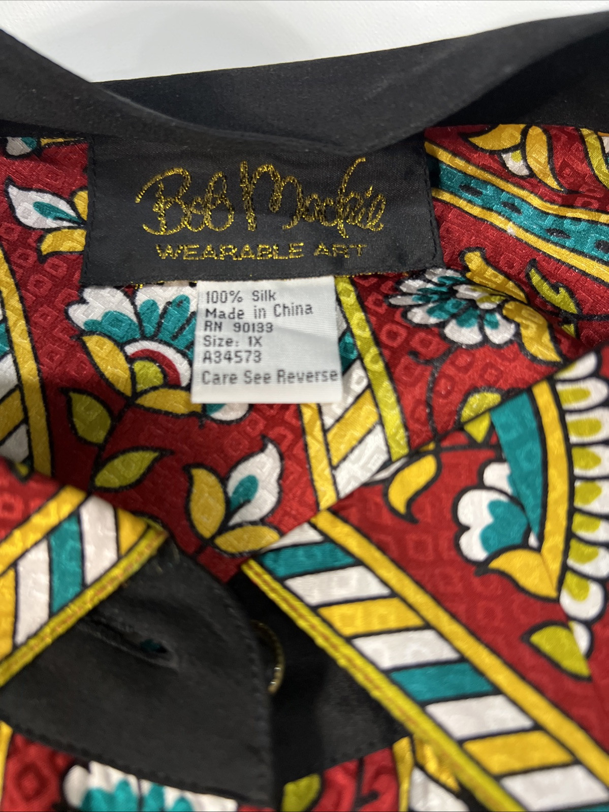 Vtg Women s Bob Mackie Wearable Art 100 Silk Sz Xl Floral Paisley AOP