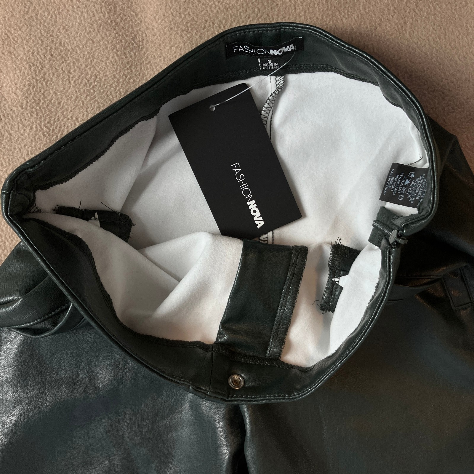 как выглядит Fashion Nova Womens Faux Leather Side Zipper Skinny Pant Size S Hunter NWT фото