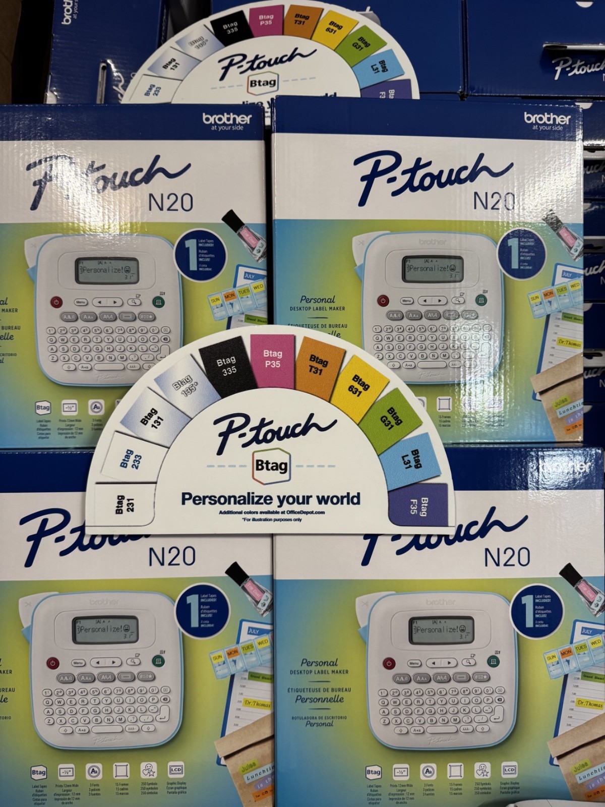 как выглядит 3 PACK Brother P-Touch BTAG BLUE PURPLE PINK BLACK WHITE GENUINE PT-N10 20 25 фото