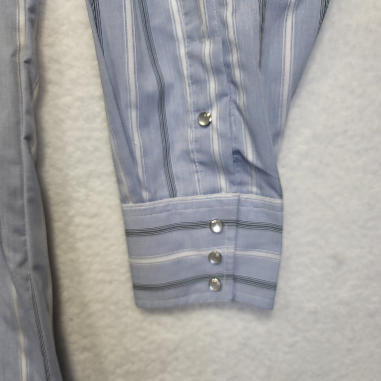 Men s Blue Stripe Panhandle Slim Long Sleeve Pearl Snap Shirt 16.5x34