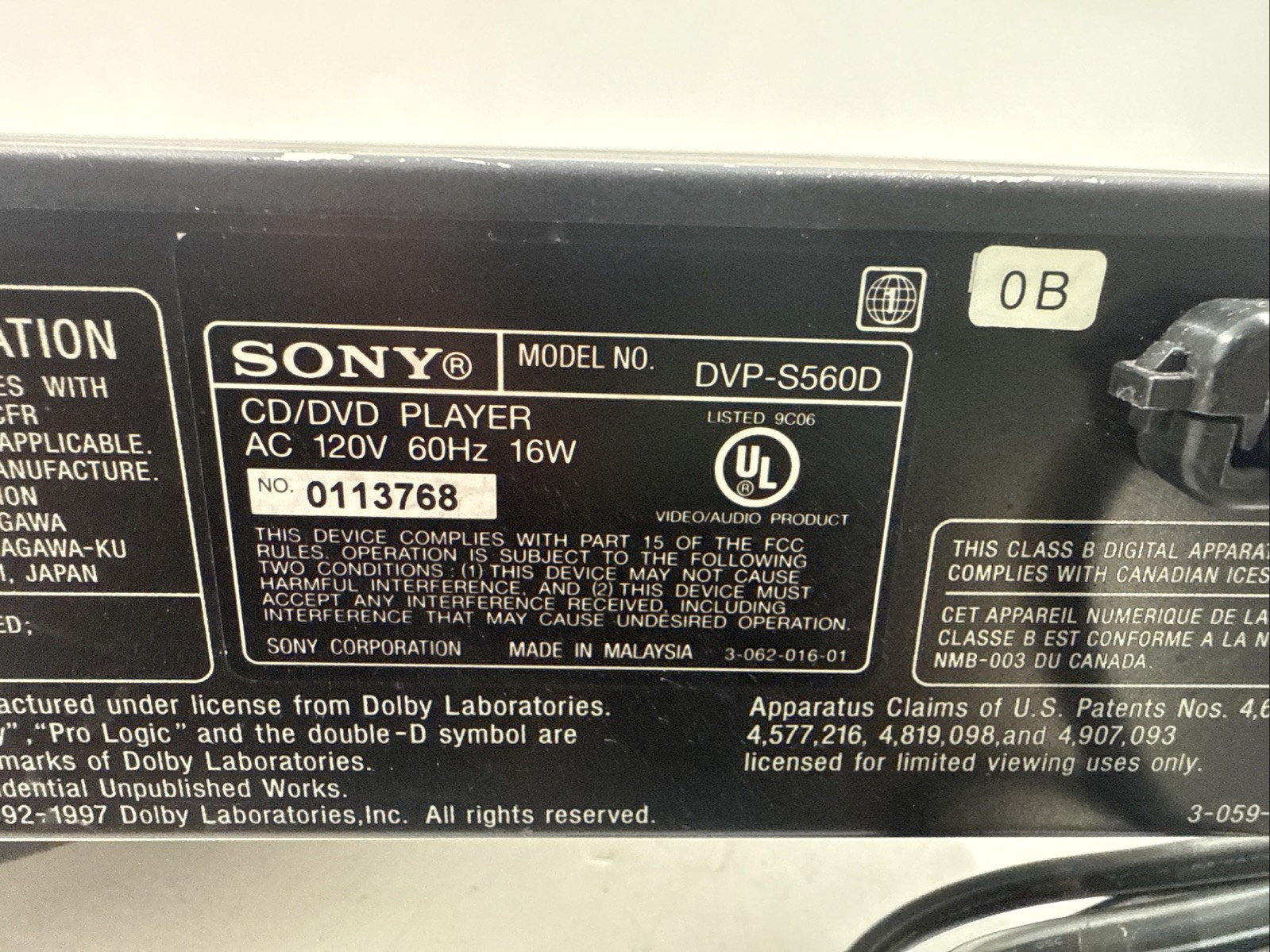 как выглядит Sony DVP-S560D DVD Dolby Digital Player Black W/Remote and RCA cables EB-18914 фото