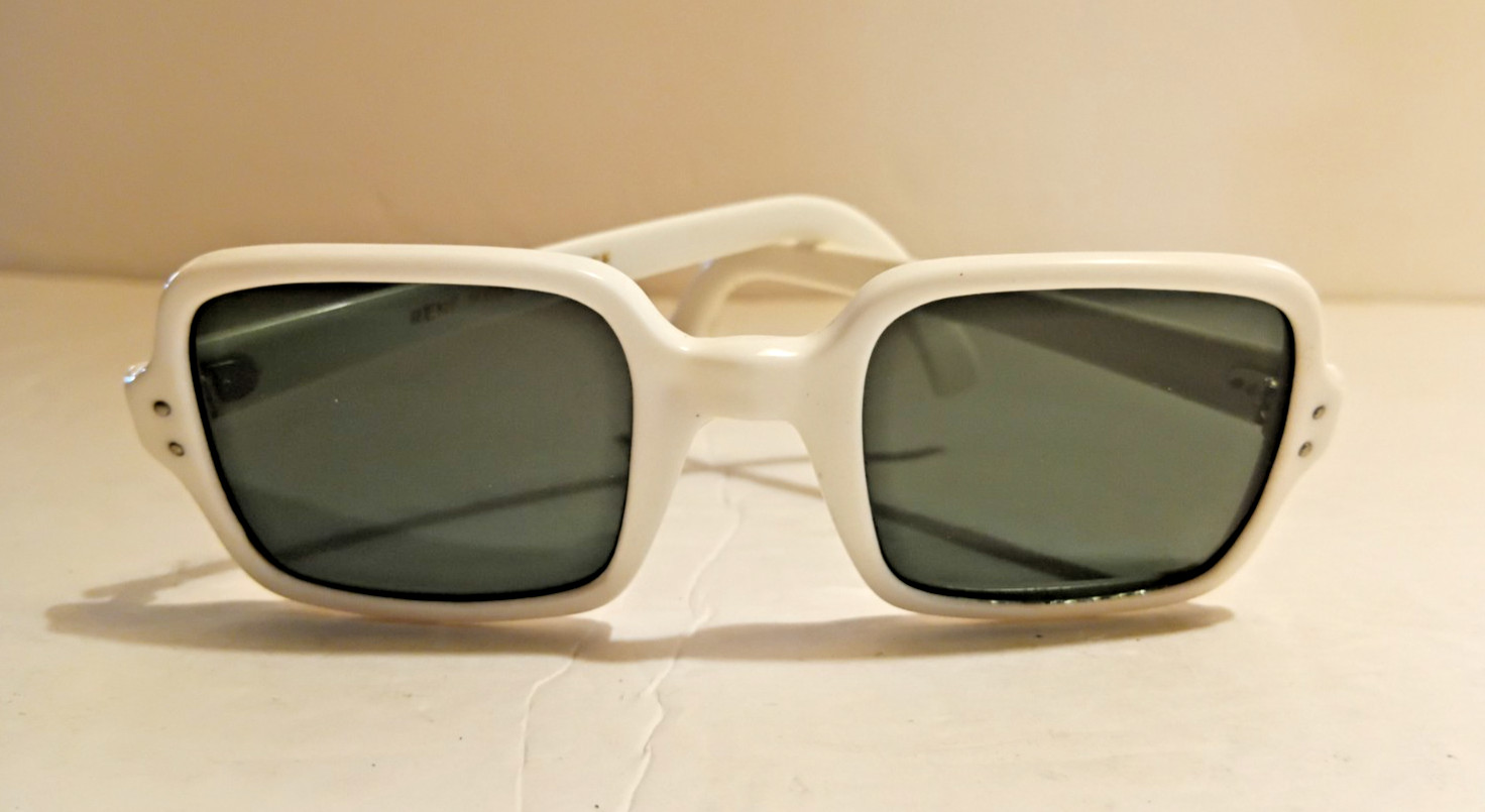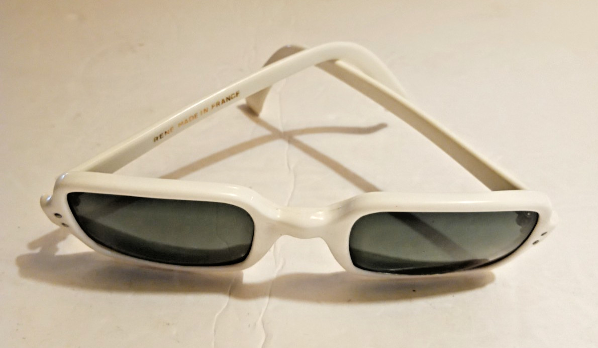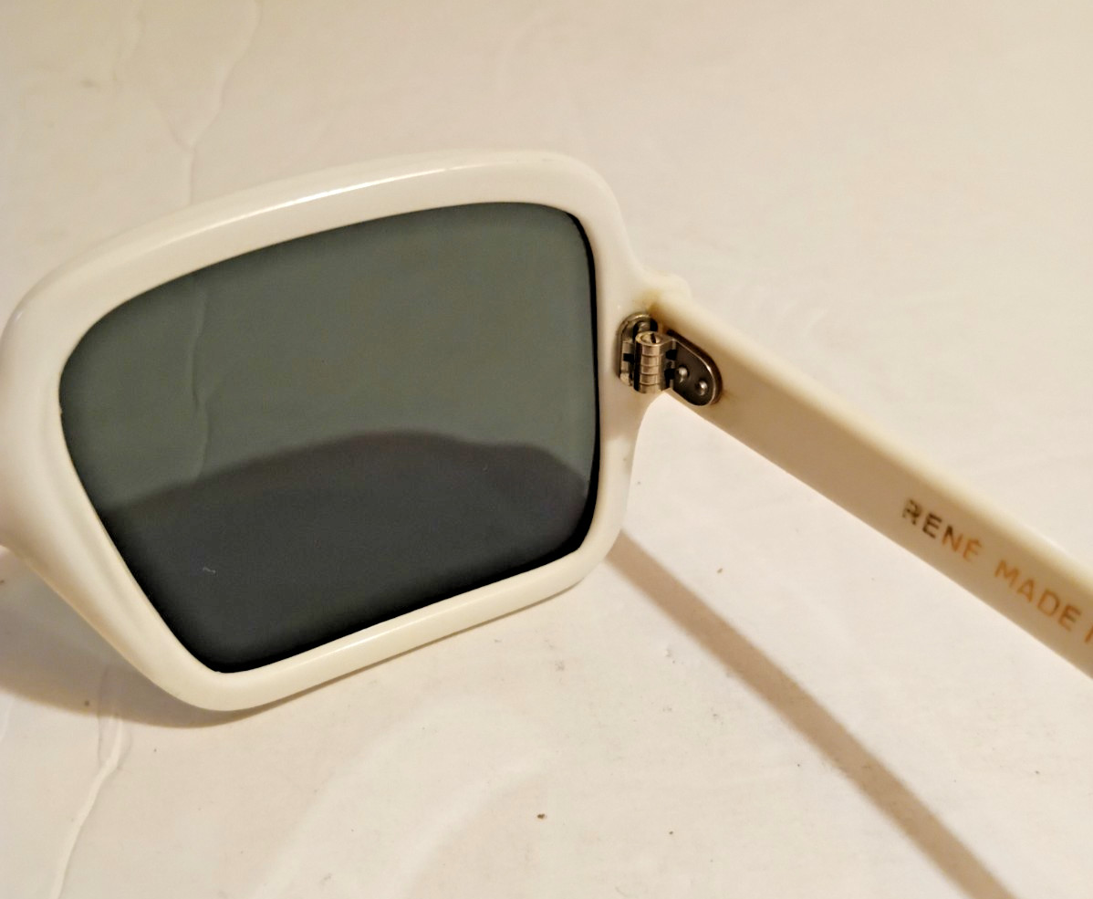 Vintage 1960's Rene France Square White Sunglasses Glass Lenses