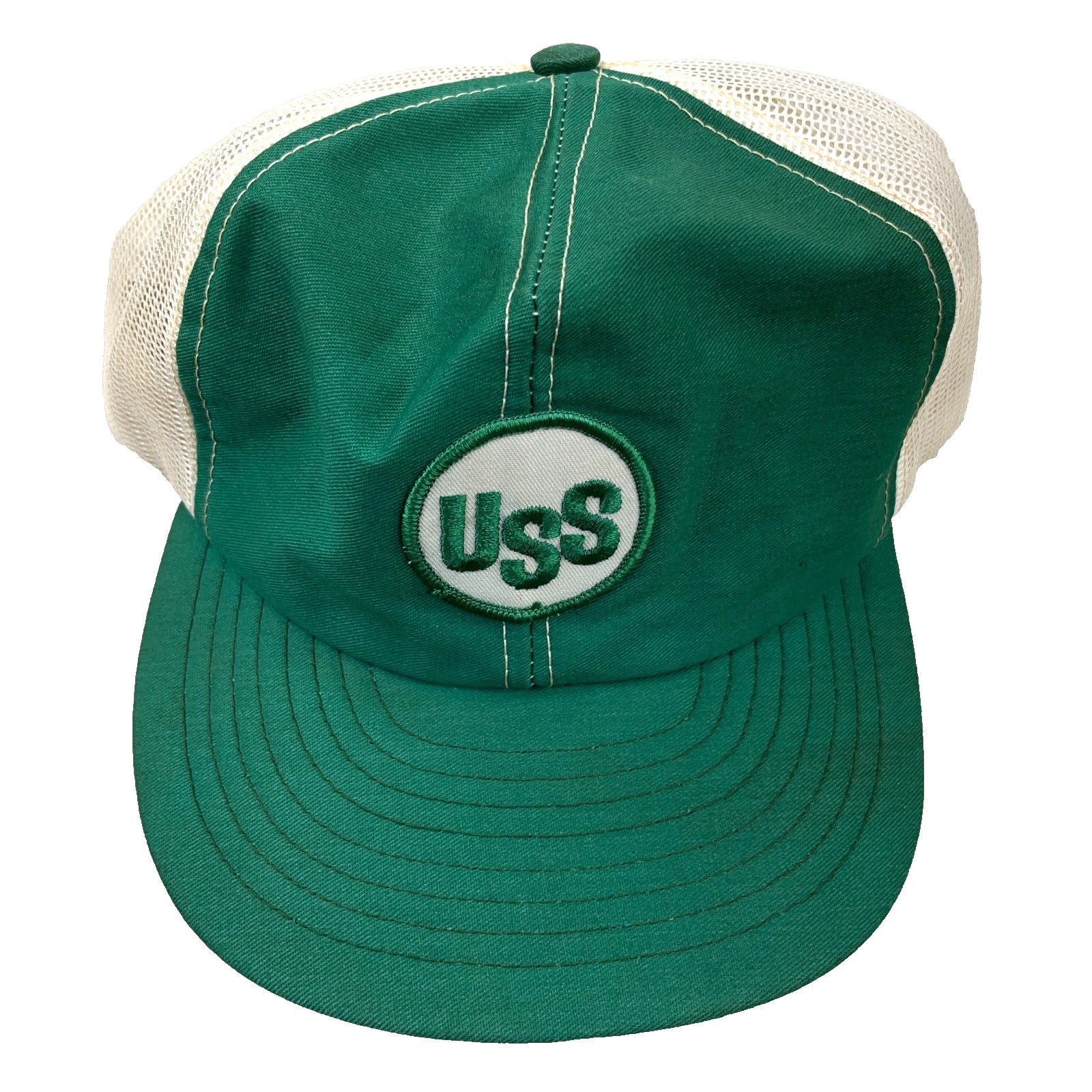 Vintage Louisville MFG Trucker Hat Cap Made in USA 80s Farm Seed USS Patch Green