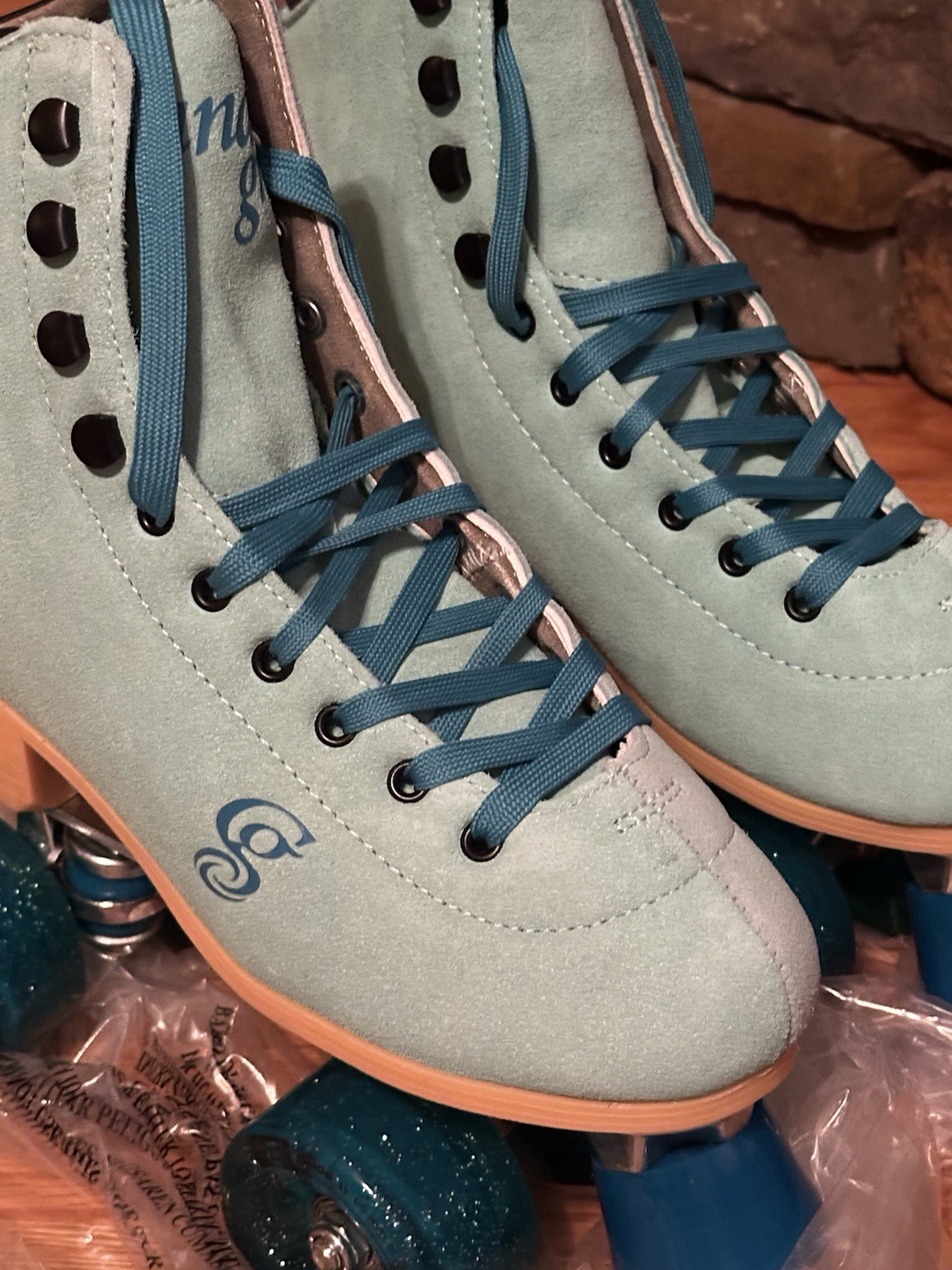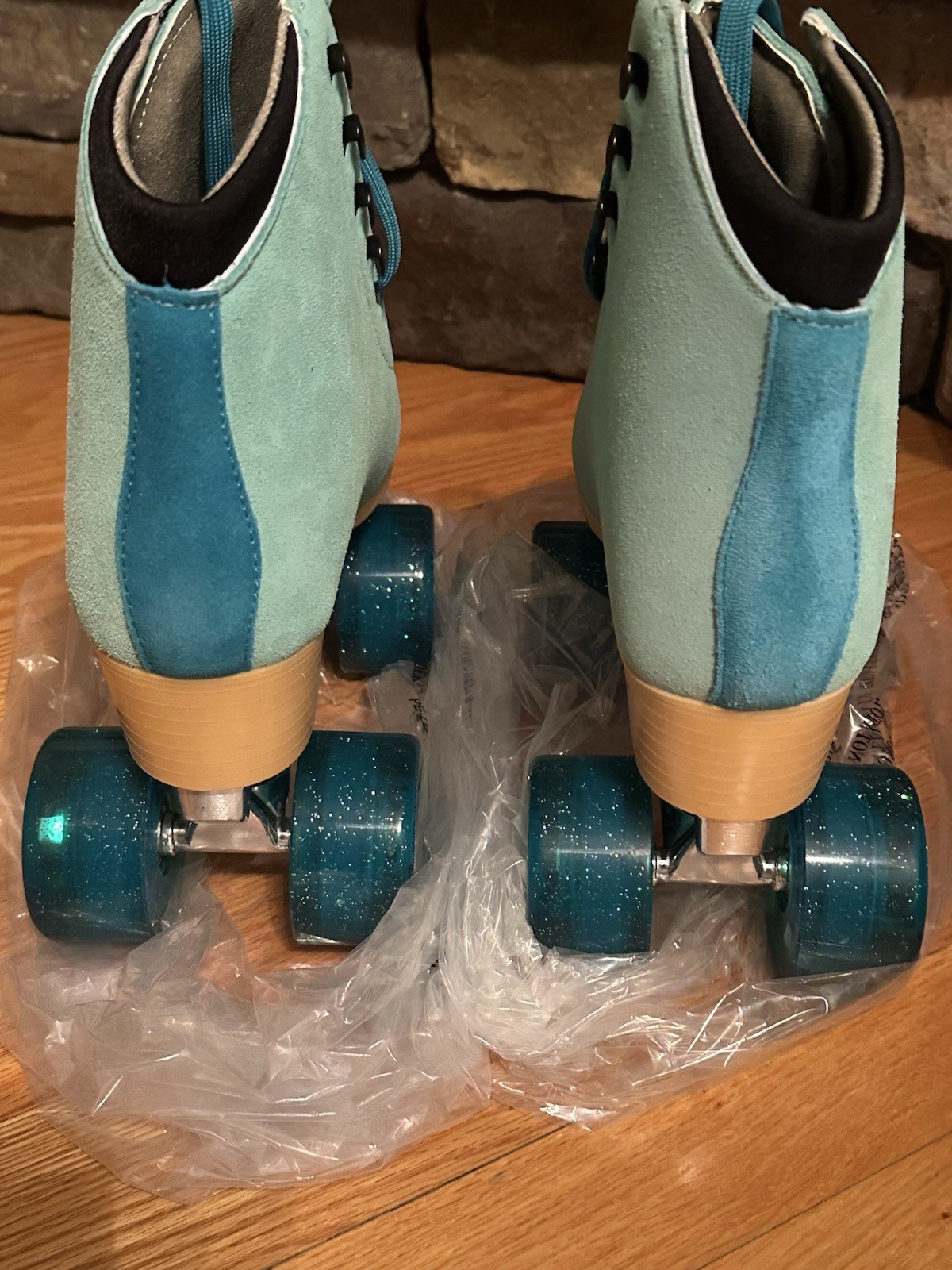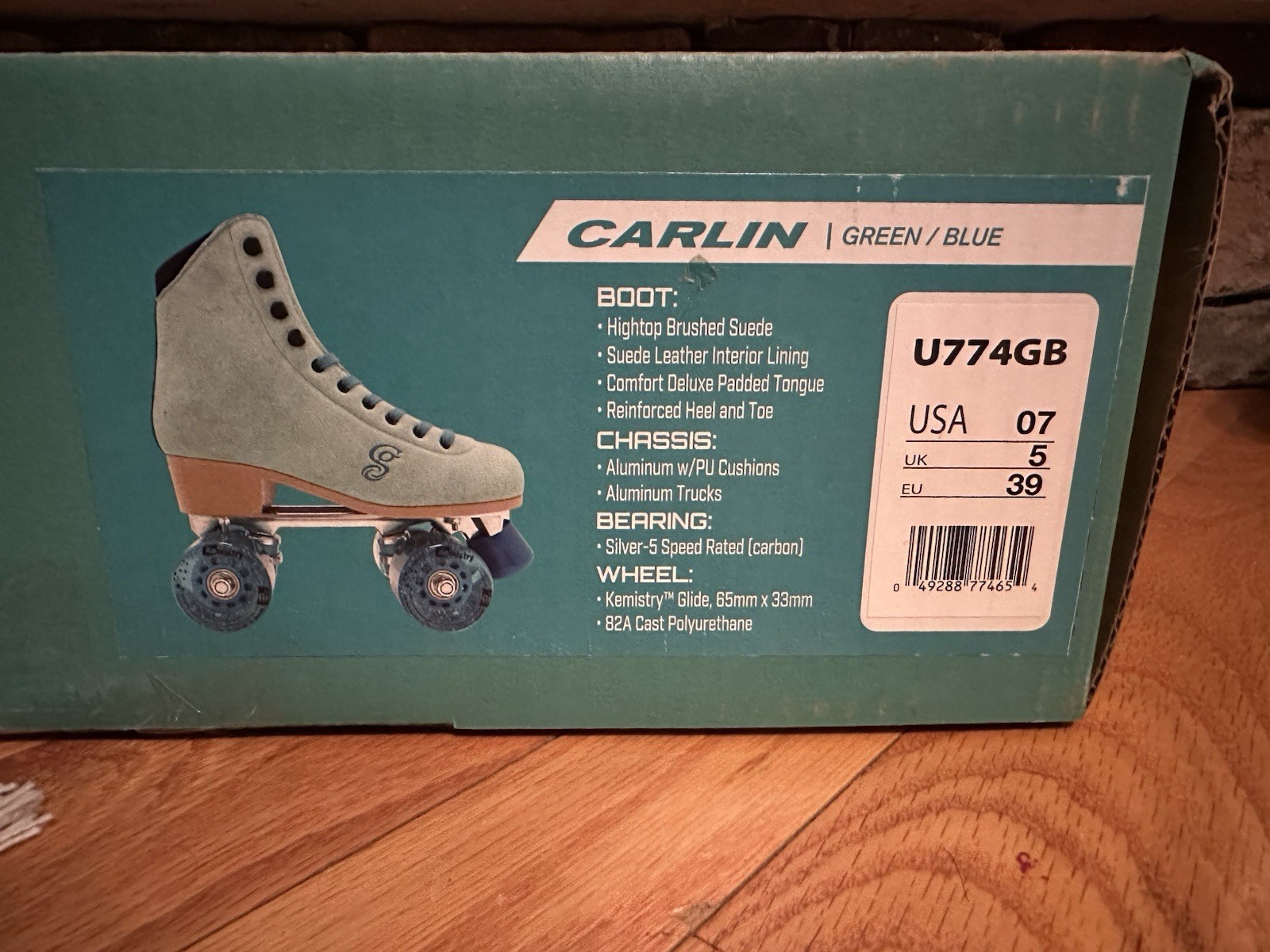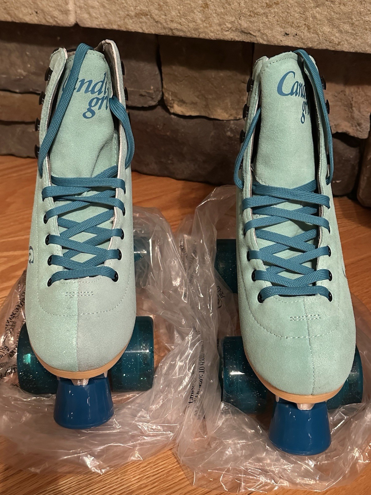 NEW IN BOX Candi Girl CARLIN Suede Green/Blue Quad Roller Skates, Size 7
