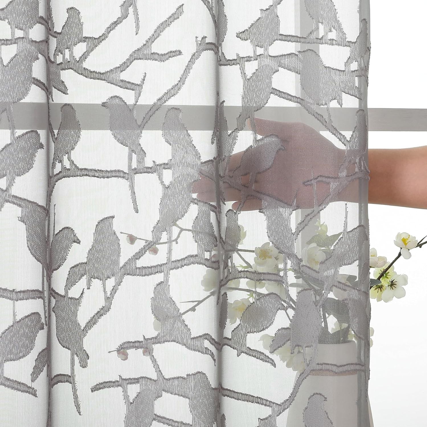 OVZME Anji Sheer Grey Curtains 63 Inches Long, 38W x 63L Pack of 2 ,
