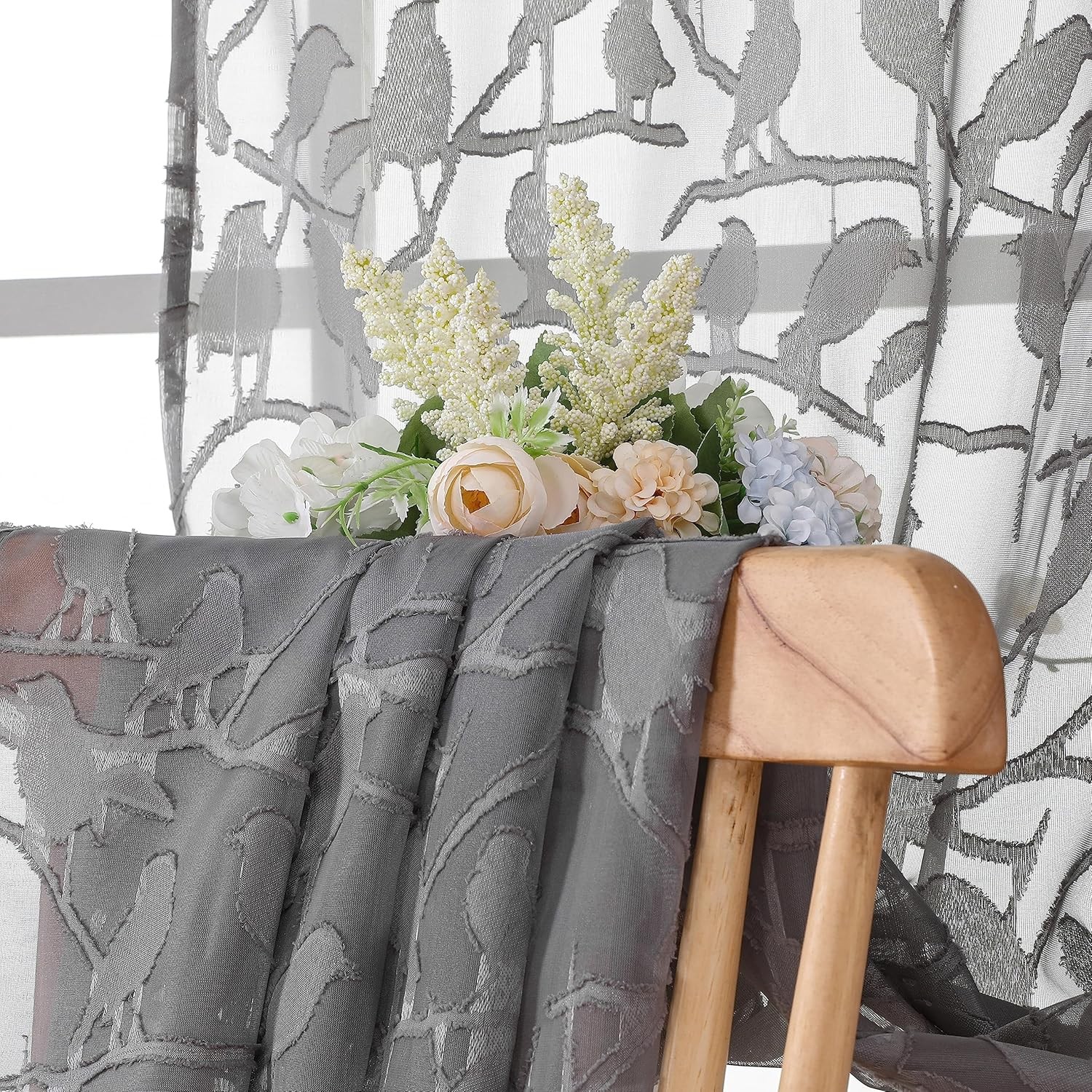 как выглядит OVZME Anji Sheer Grey Curtains 63 Inches Long, 38W x 63L Pack of 2 , фото