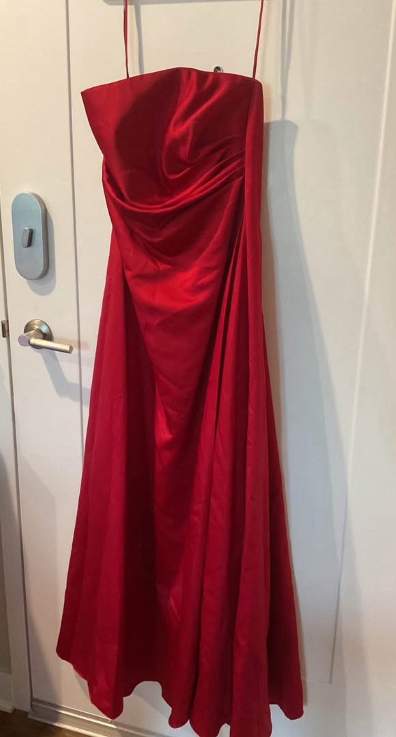 как выглядит NEW Davids Bridal Dress, Bridesmaid Evening Prom Strapless Size 12 Red NWT фото