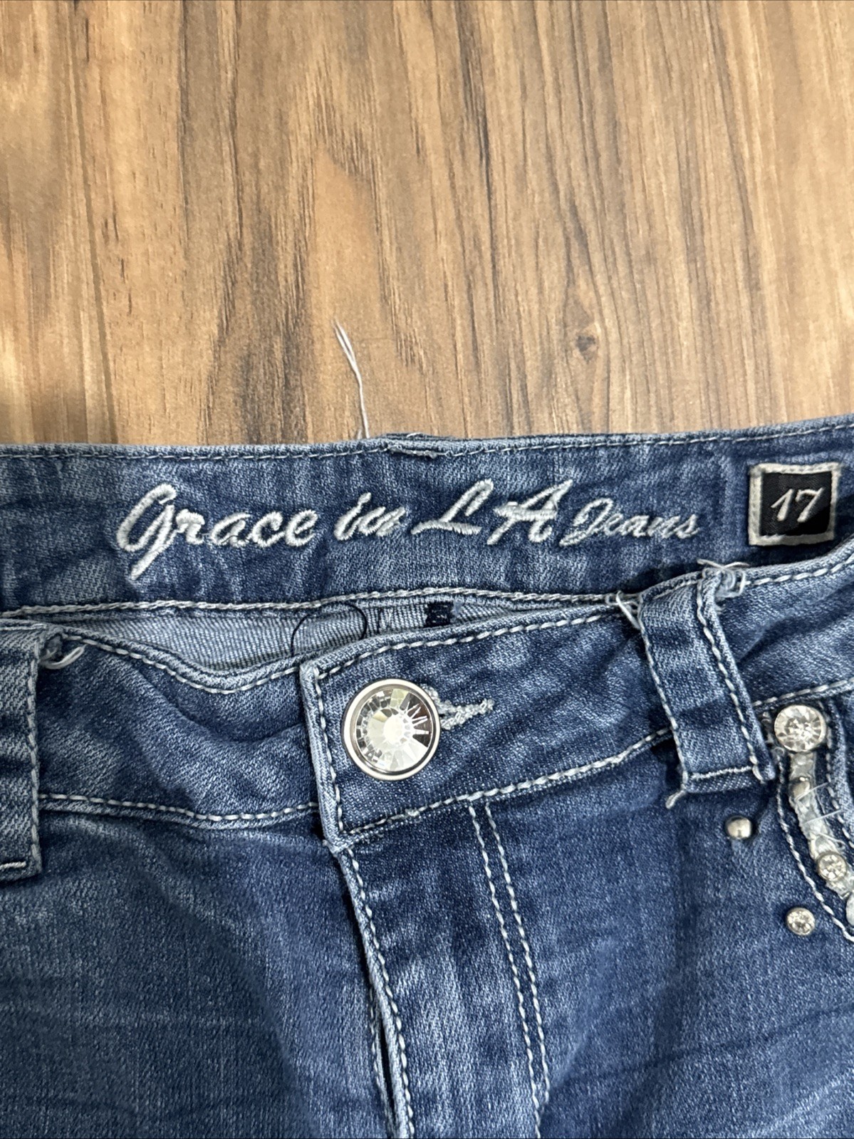 Grace In LA Jeans Women's Size 17 Mid Rise Bootcut Denim Rhinestones