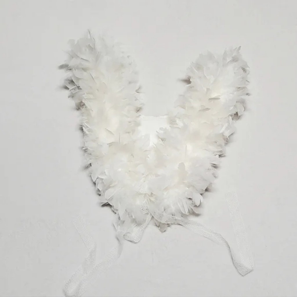 как выглядит Vintage Handmade One of a Kind Ivory Real Feather Crystal Lace Sequin Angel Wing фото