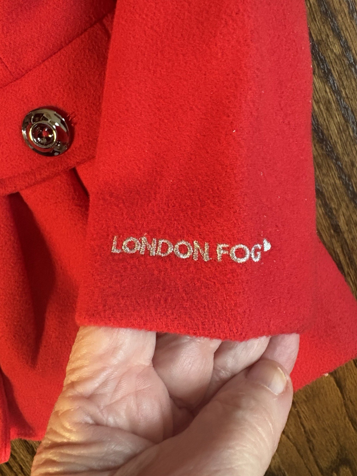 как выглядит London Fog Baby Girls Coat Red with Black Faux Fur Trim Size 24 Months EUC фото