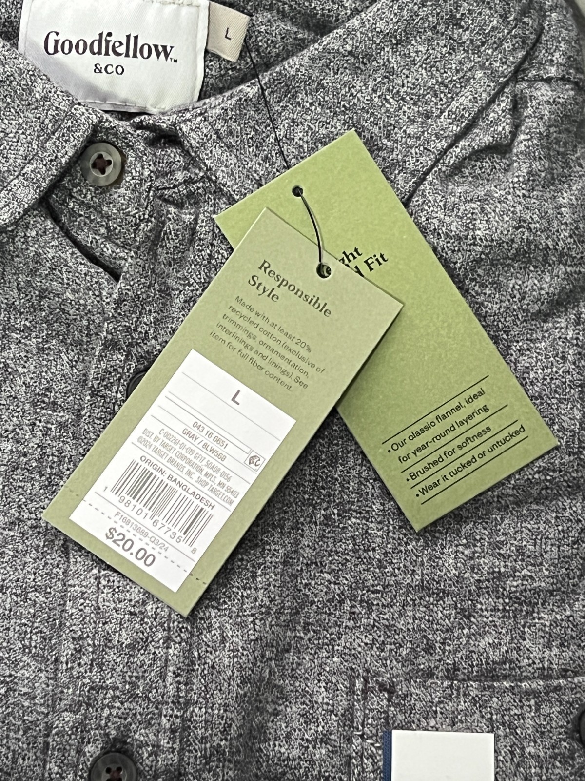 как выглядит Goodfellow Co Heather Gray Mid-Weight Flannel Long Sleeve Button-Up Shirt L фото